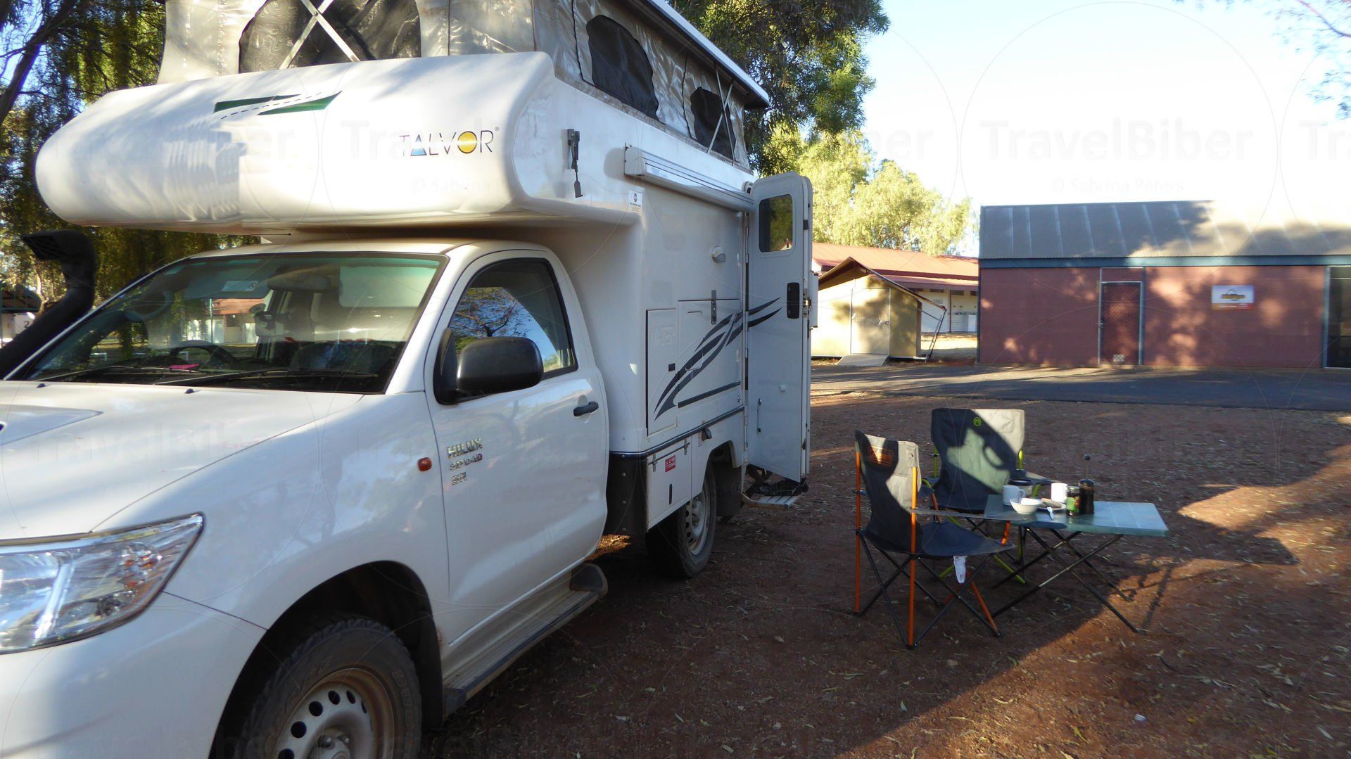 am Beginn des Watarrka National Park im Northern Territory; Frühstück im Freien.