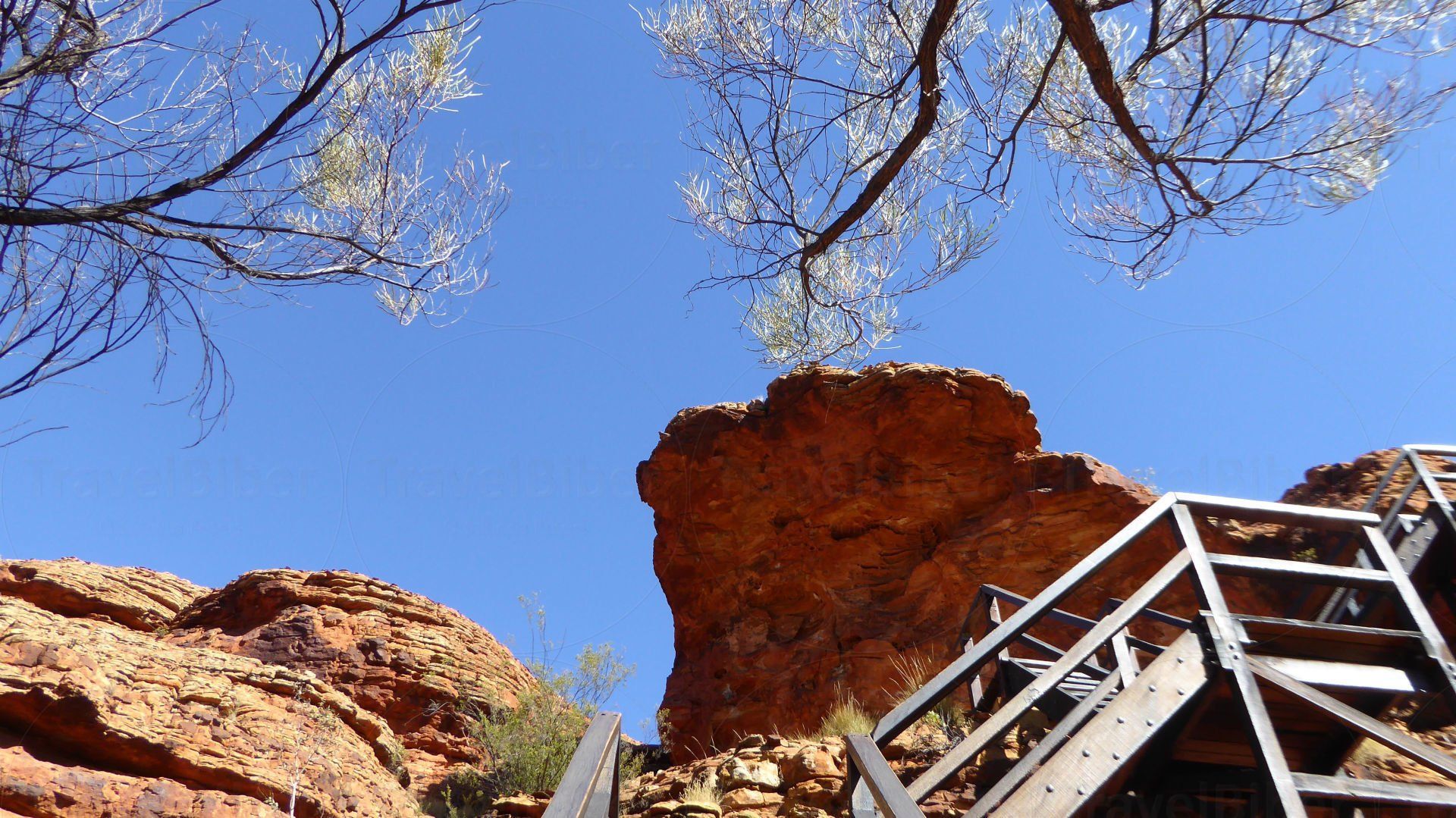 Kings Canyon Walk - erst einmal geht es mehrere Stufen den Berg hoch.
