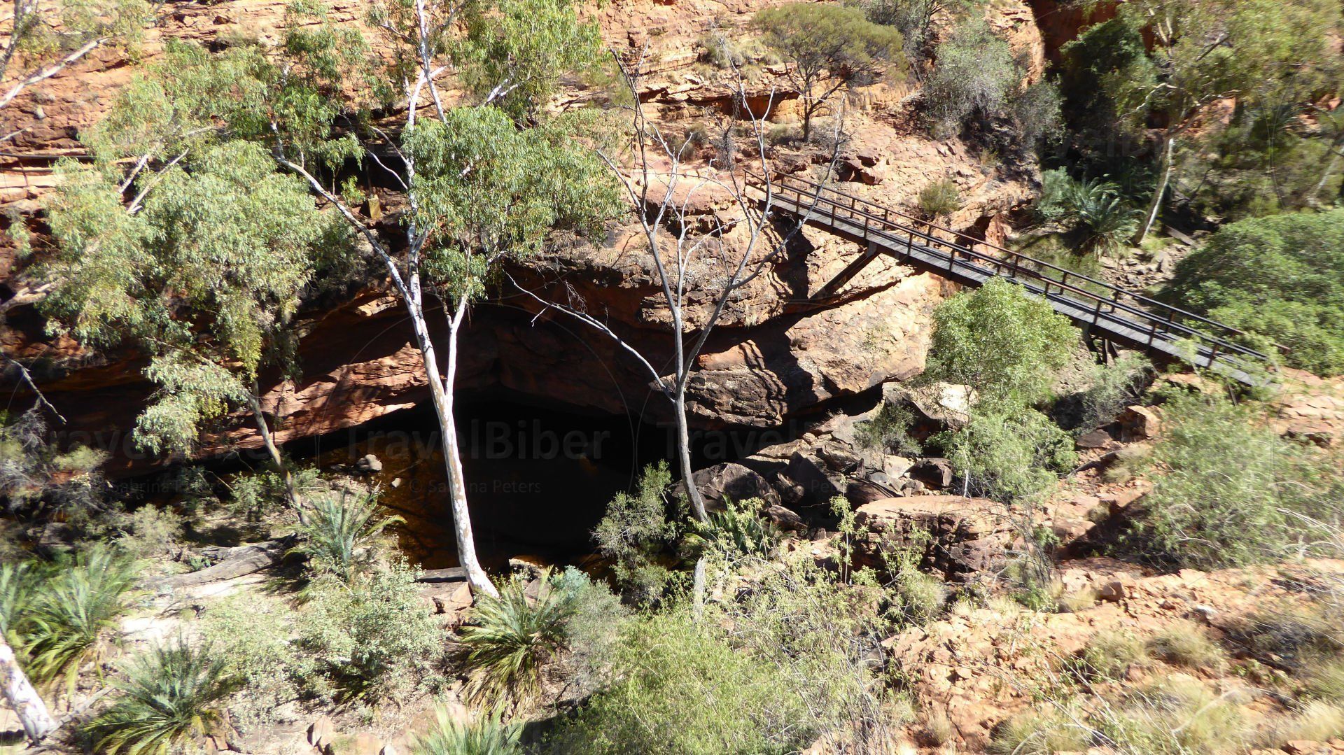 Ein Stück weiter kann man vom Parkplatz aus in etwas mehr als einem Kilometer zu den Kathleen Springs gehen. Das sind Quellen im Watarrka-Nationalpark. Hier am Startpunkt.
