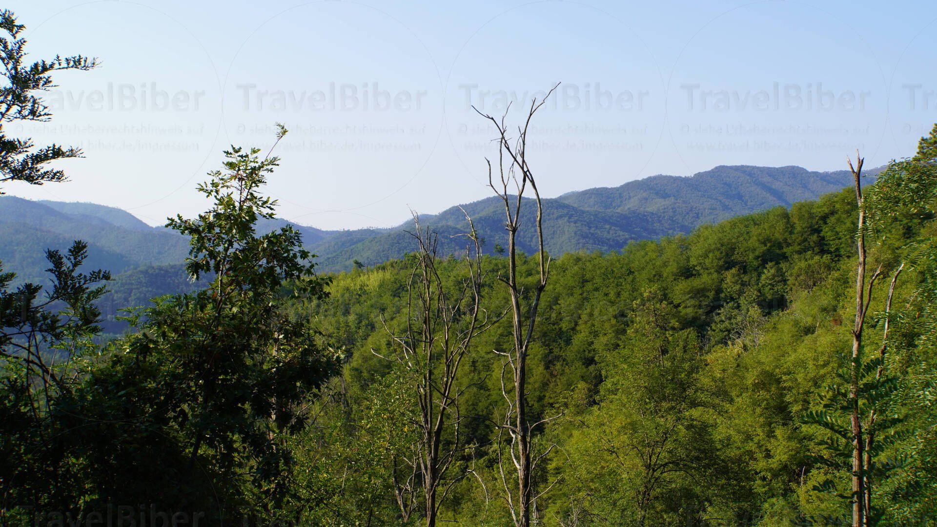 Blick über das dicht bewaldete Ligurien...