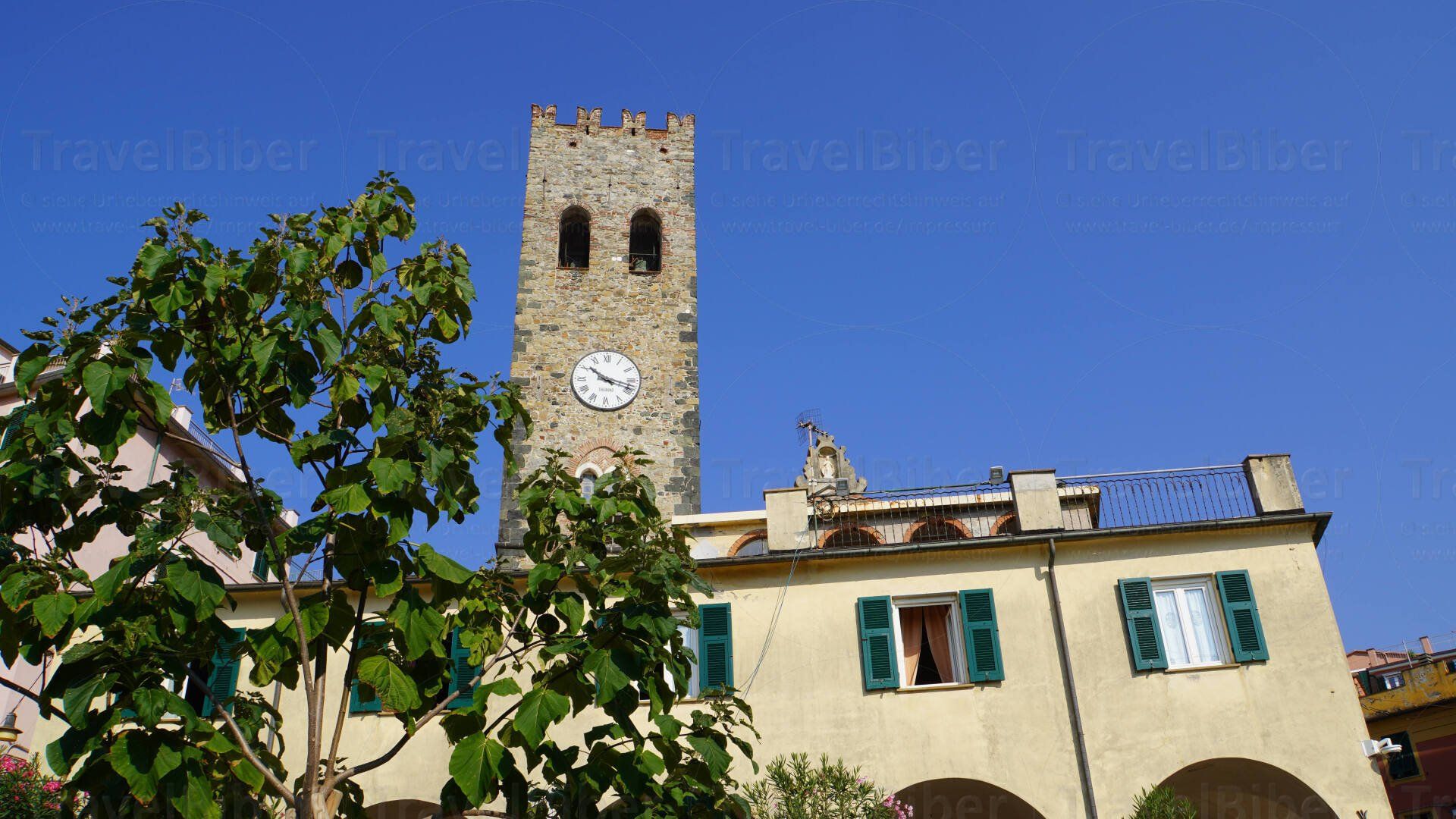 Im Hintergrund der historische Turm von Monterosso al Mare.