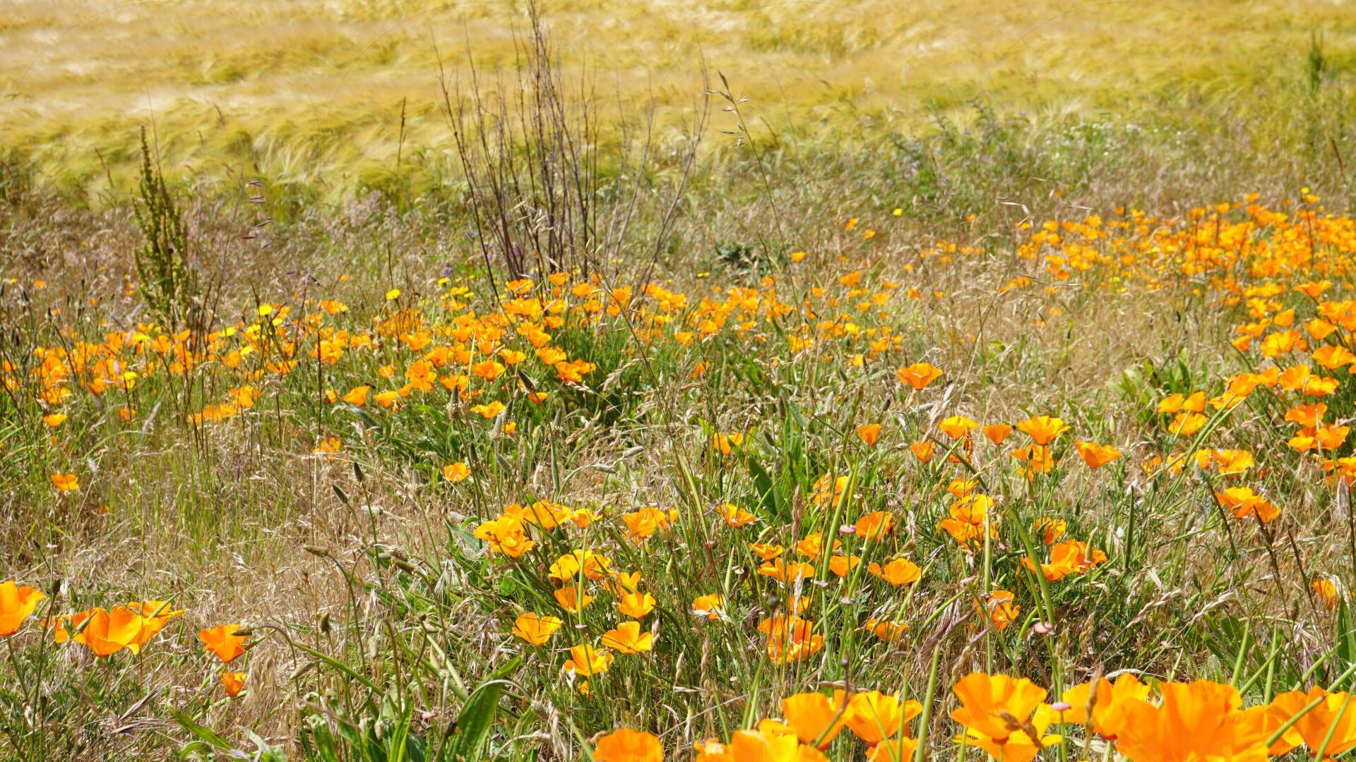 Oranges Blumenmeer auf Whidbey Island.