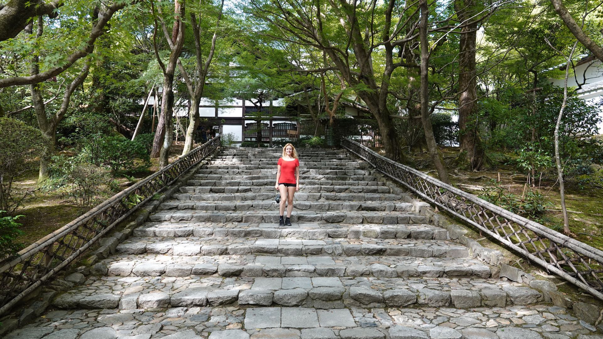 Schöne Steintreppe auf dem Gelände des Ryoanji-Tempel.