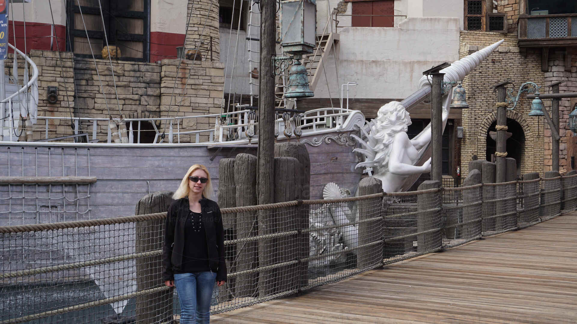 vor dem großen Piratenschiff; beim ersten Besuch gabs hier noch eine Show dazu, jetzt leider nicht mehr.