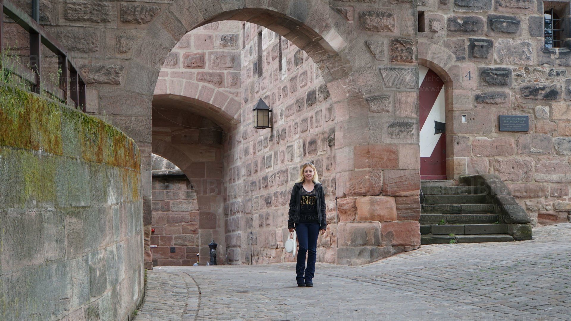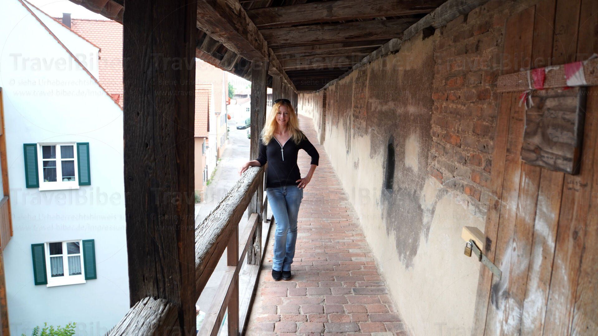 Spaziergang auf der Stadtmauer in Nördlingen, ...