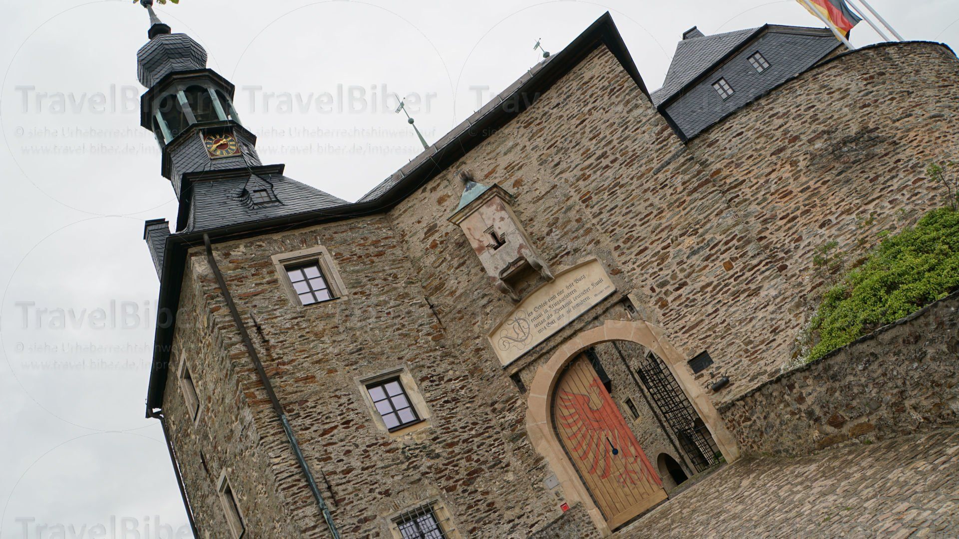 Ein freches Eichhörchen tummelt sich in den Bäumen um die Burg Lauenstein.