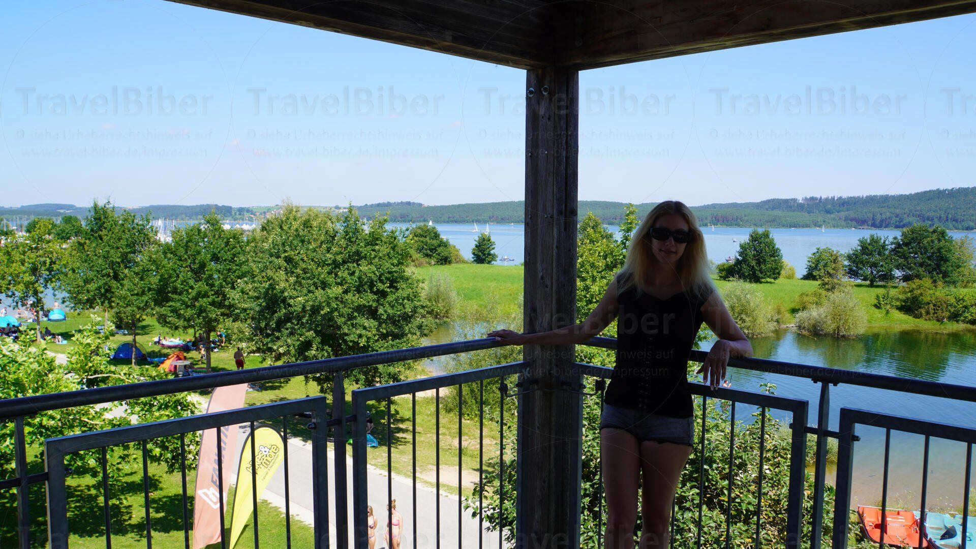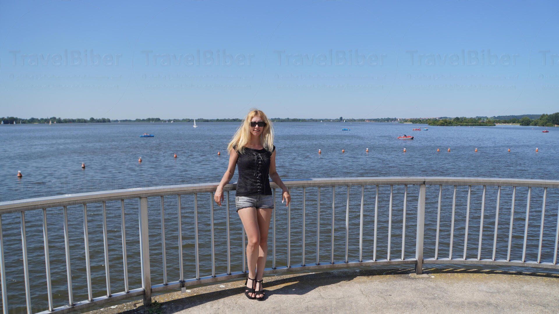 Im Hintergrund sieht man die Statue des „Lindauer Löwe“
