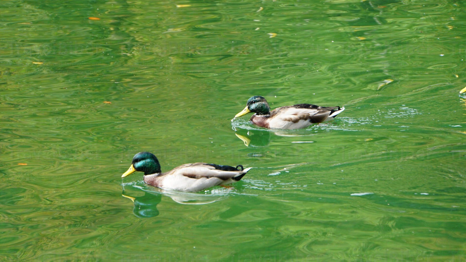 Enten auf dem Königssee; der See leuchtet wunderschön.