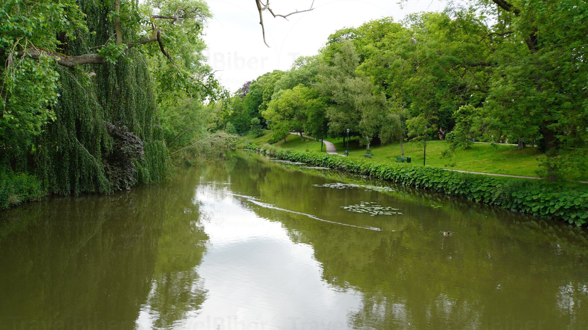 ein wunderschöner grüner Park, auf dem Weg vom Parkplatz am Bahnhof in die Innenstadt hinein. Man parkt am besten auf dem großen Parkplatz beim Bahnhof; der ist verhältnismäßig günstig.