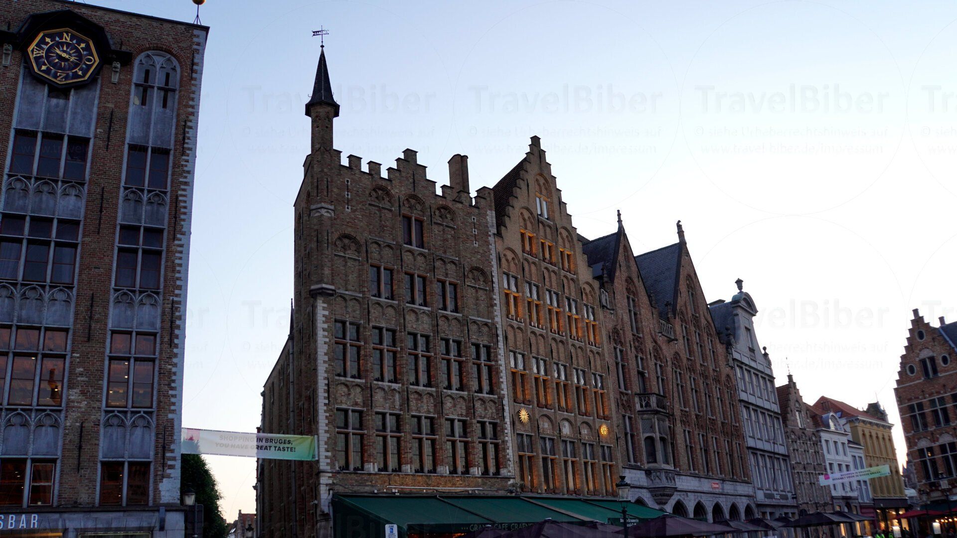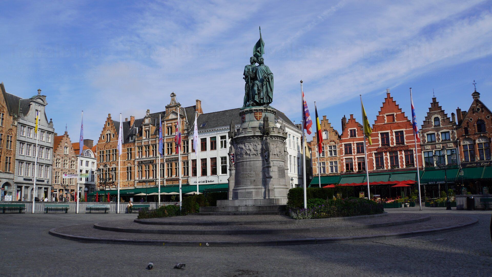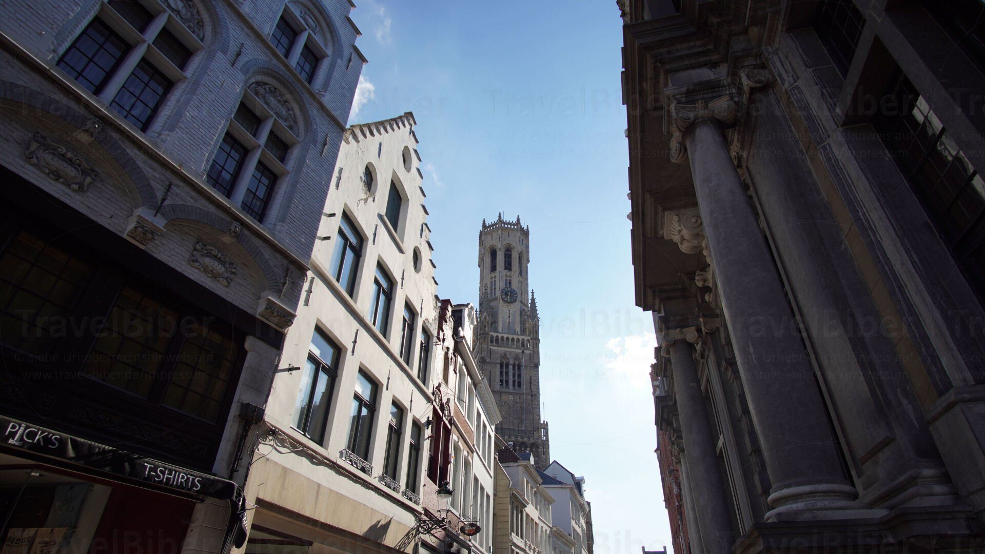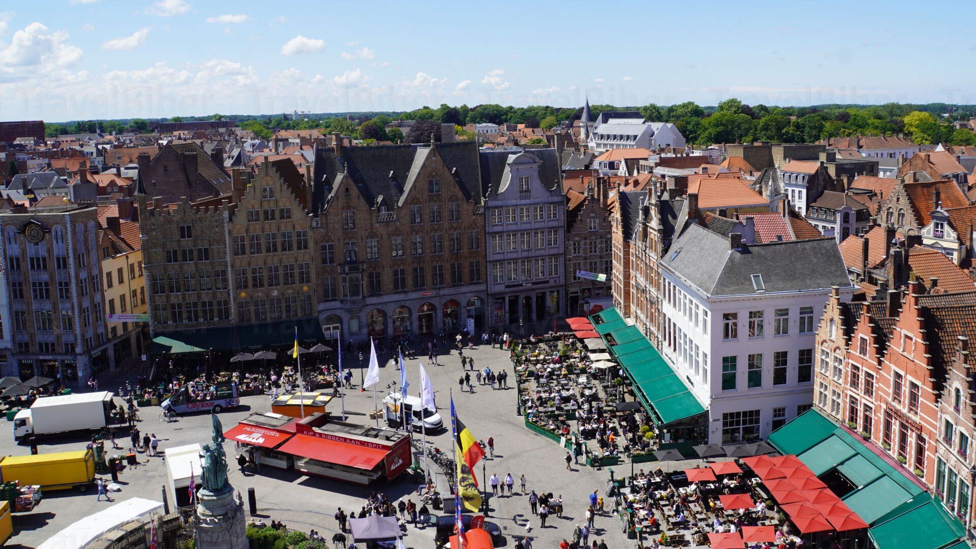 nun zum Marktplatz, dem Grote Markt, mit Aussicht auf den Belfried.