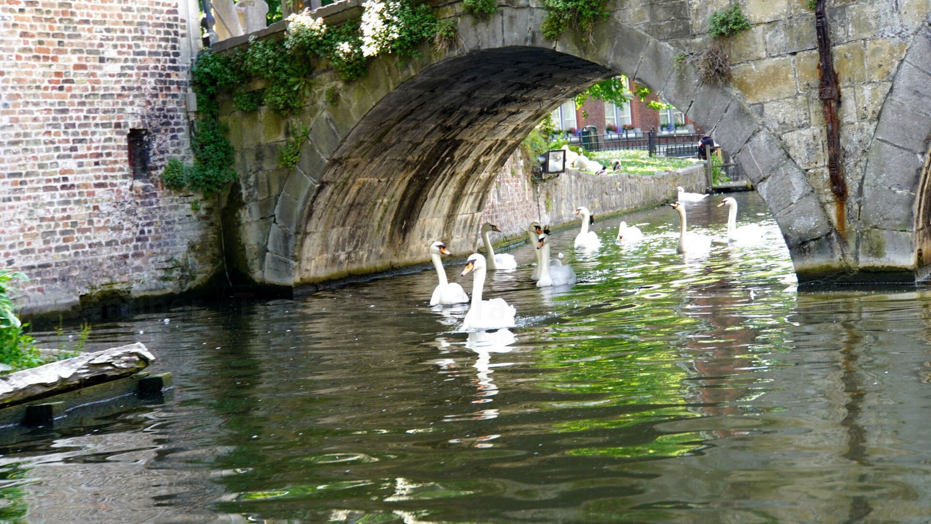 Die Schwäne von Minnewater. Sie waren vor langer Zeit als Strafe für die Brügger