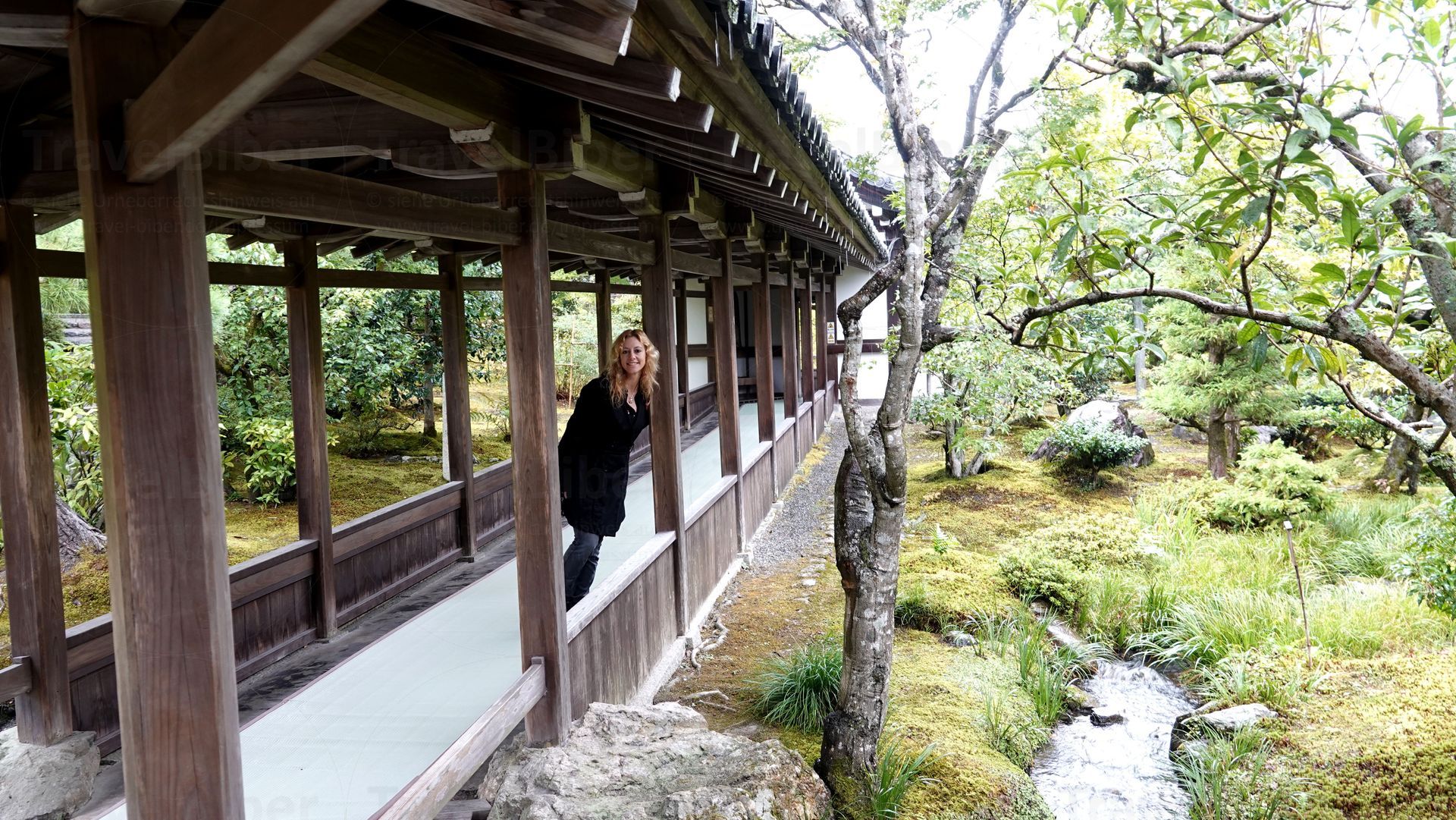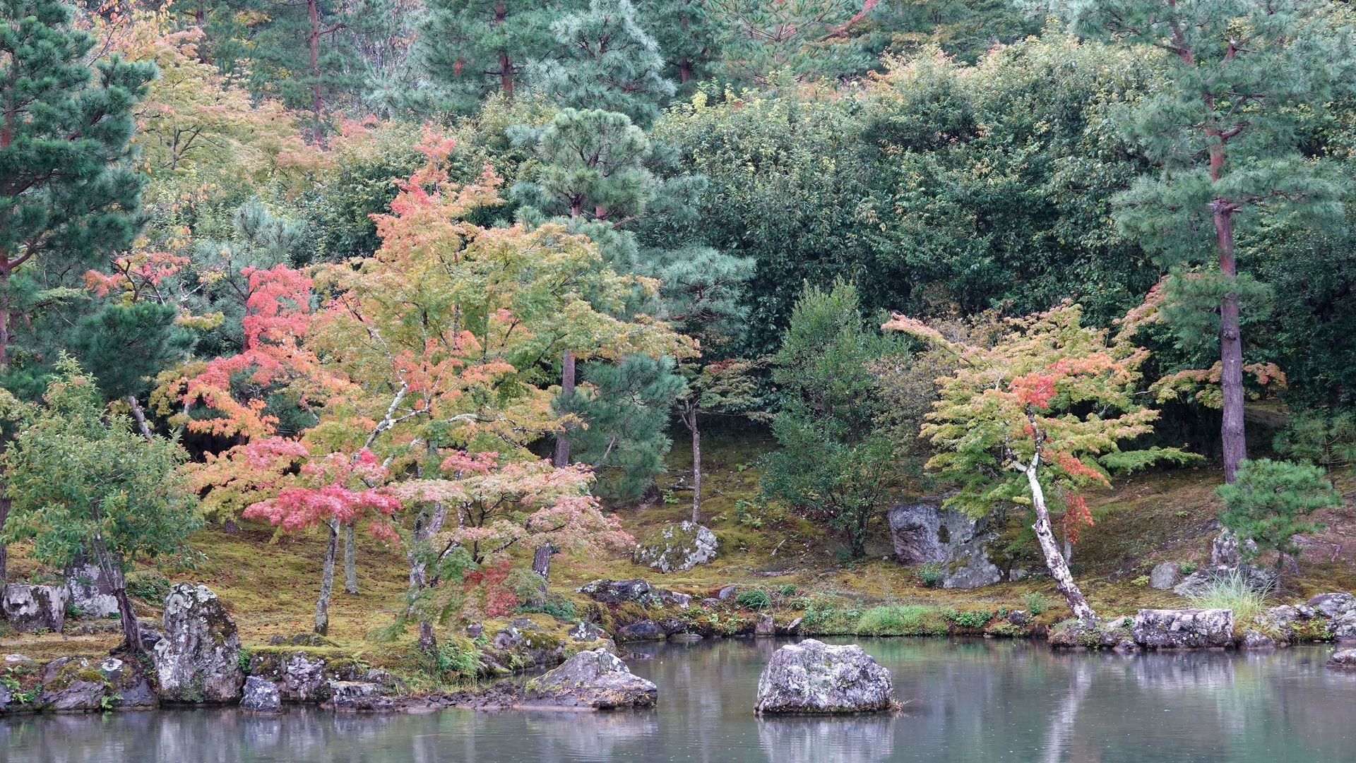 Am großen Teich des Gartens des Tenryu-ji-Tempels. Der Garten selbst gilt als nationales Naturdenkmal.