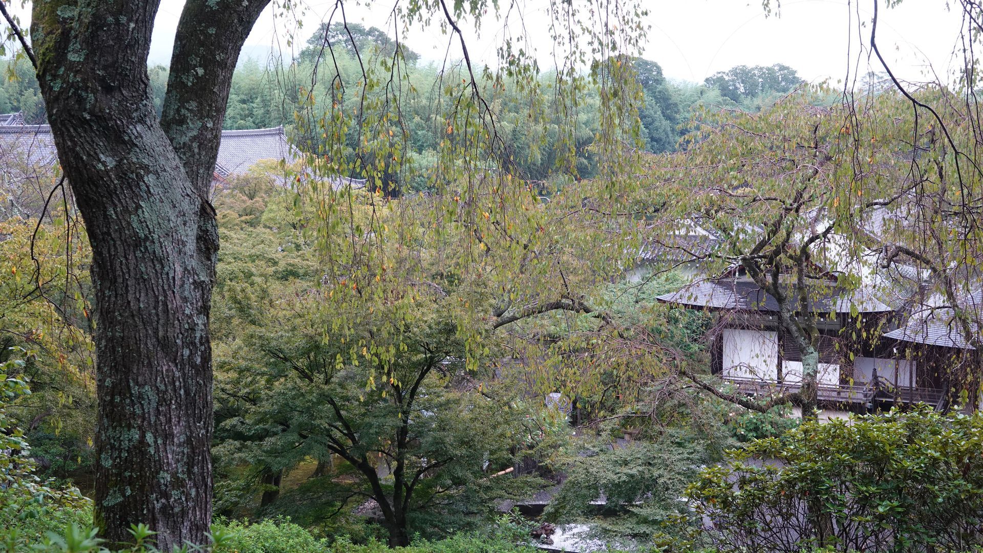 Blick von oben auf den Tenryu-ji-Tempel, der zu den fünf größten Kyoto Zen-Tempeln