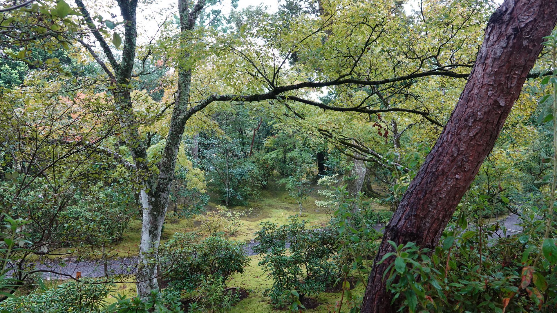 Der Garten des Tenryu-ji-Tempels ist wunderschön grün.