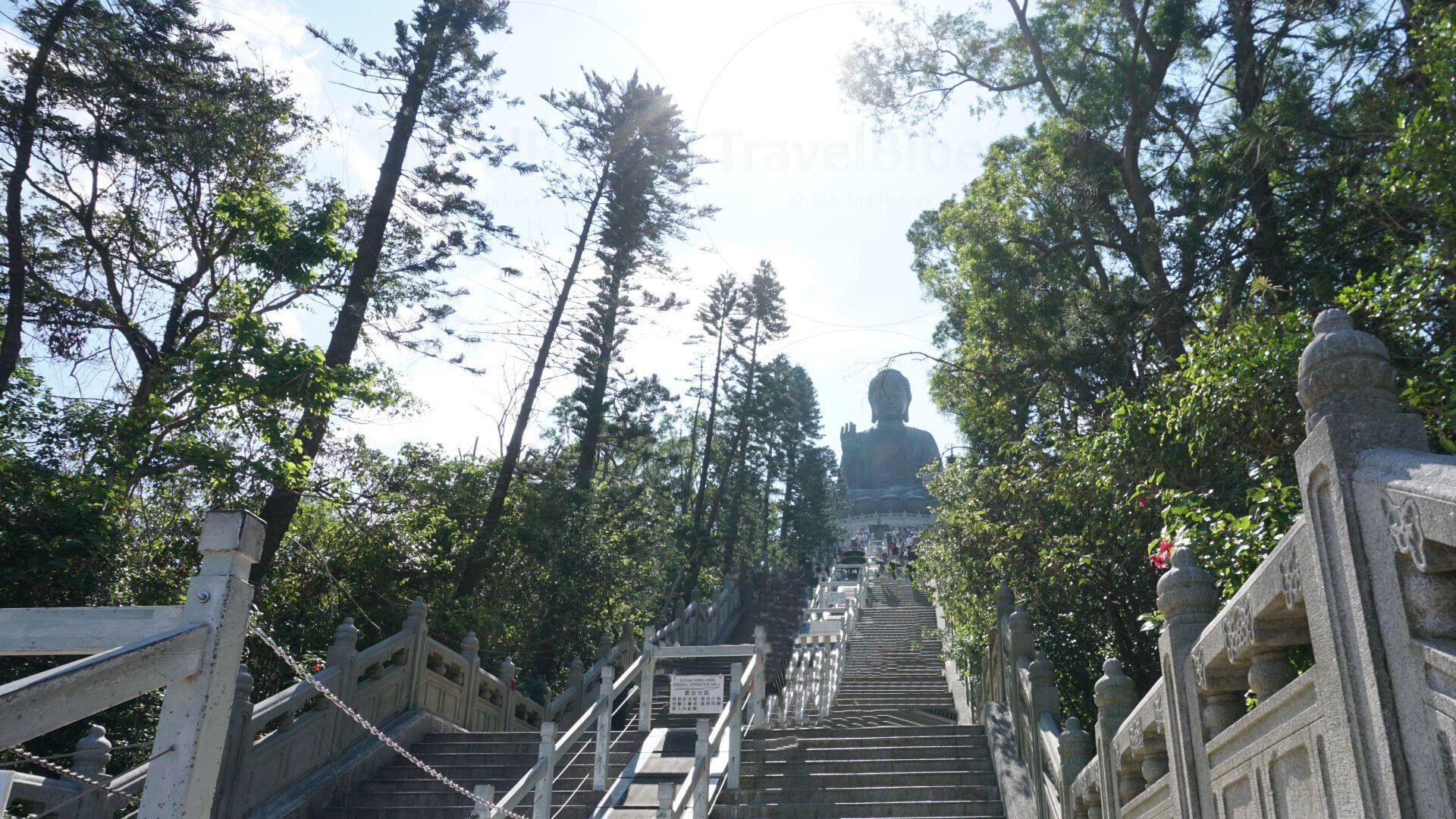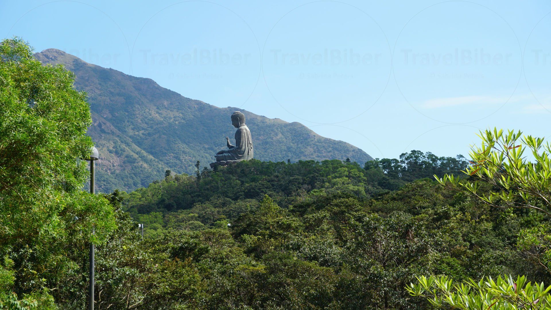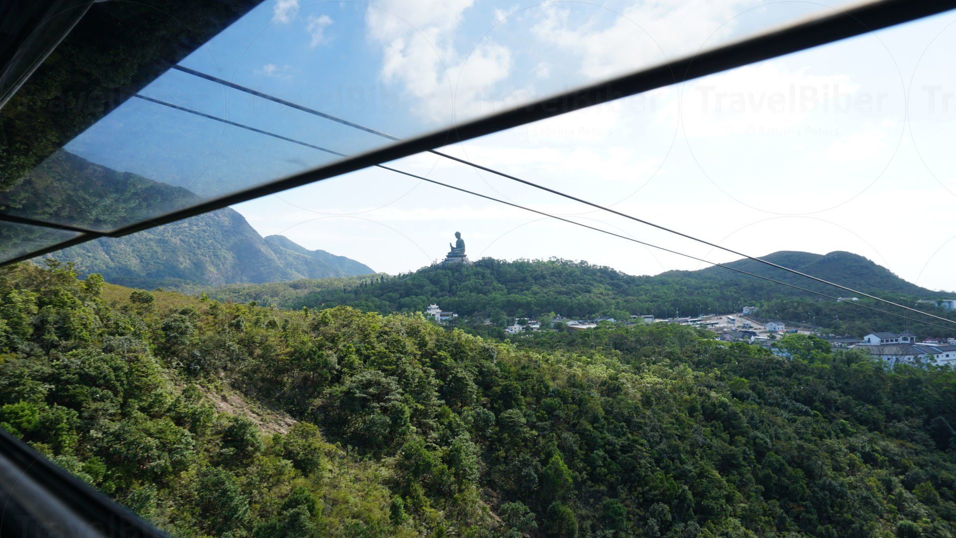 Von der Seilbahn aus sieht man bereits von weitem die riesige Buddha-Statue. Man kann im Übrigen auch hinwandern; der Weg ist von der Seilbahn aus erkennbar.