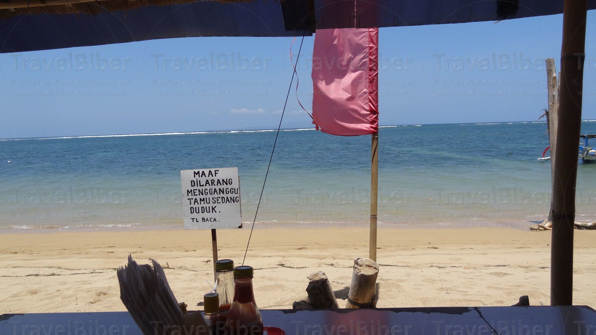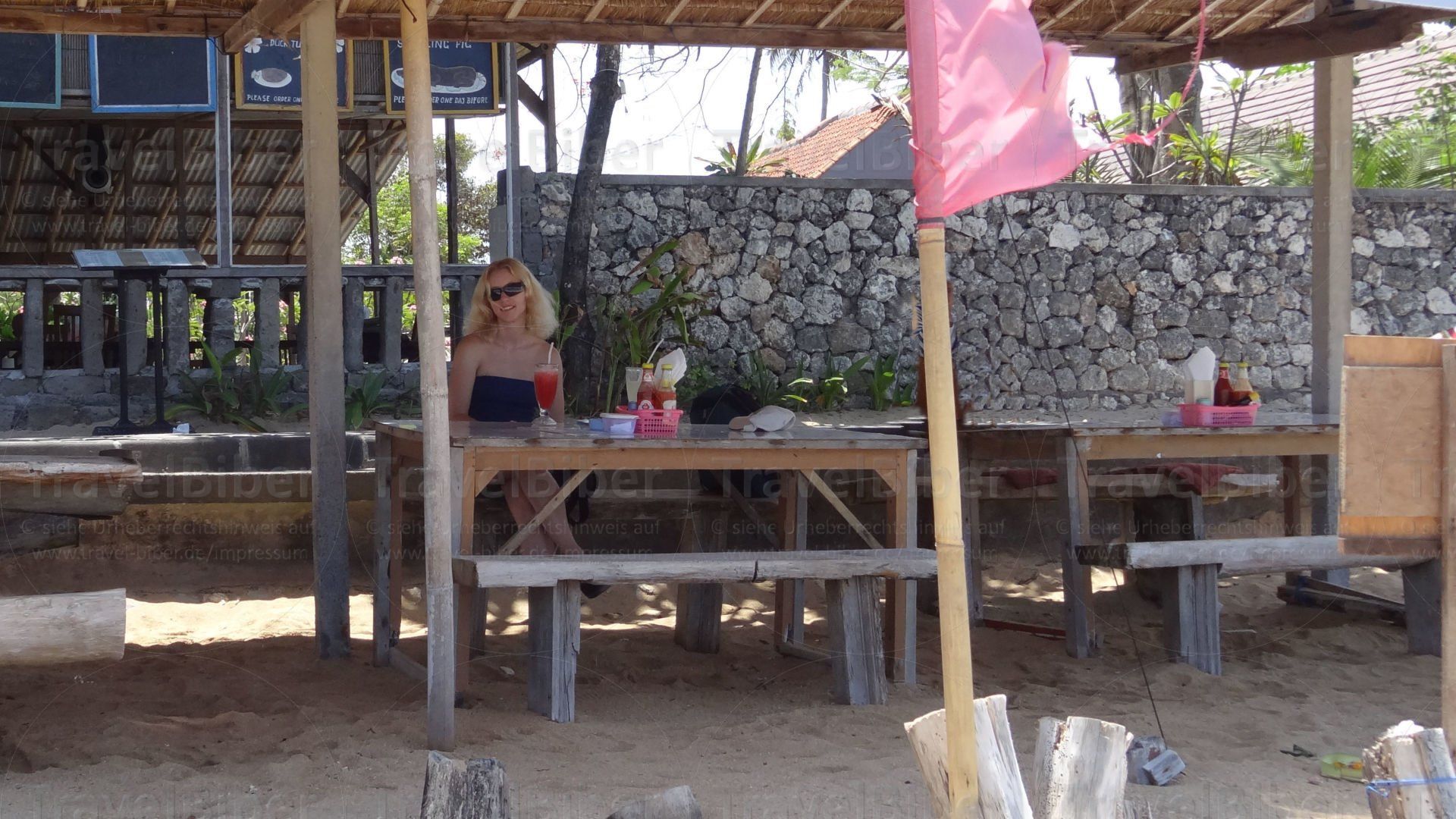Warung am Strand mit Blick aufs Meer