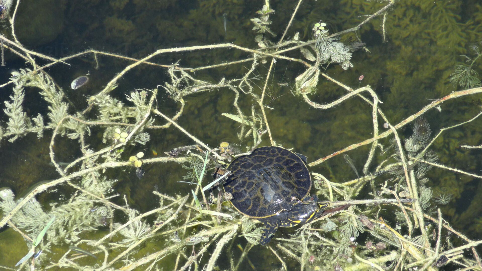 Zuerst zeigt sich aber noch eine hübsche Wasserschildkröte.