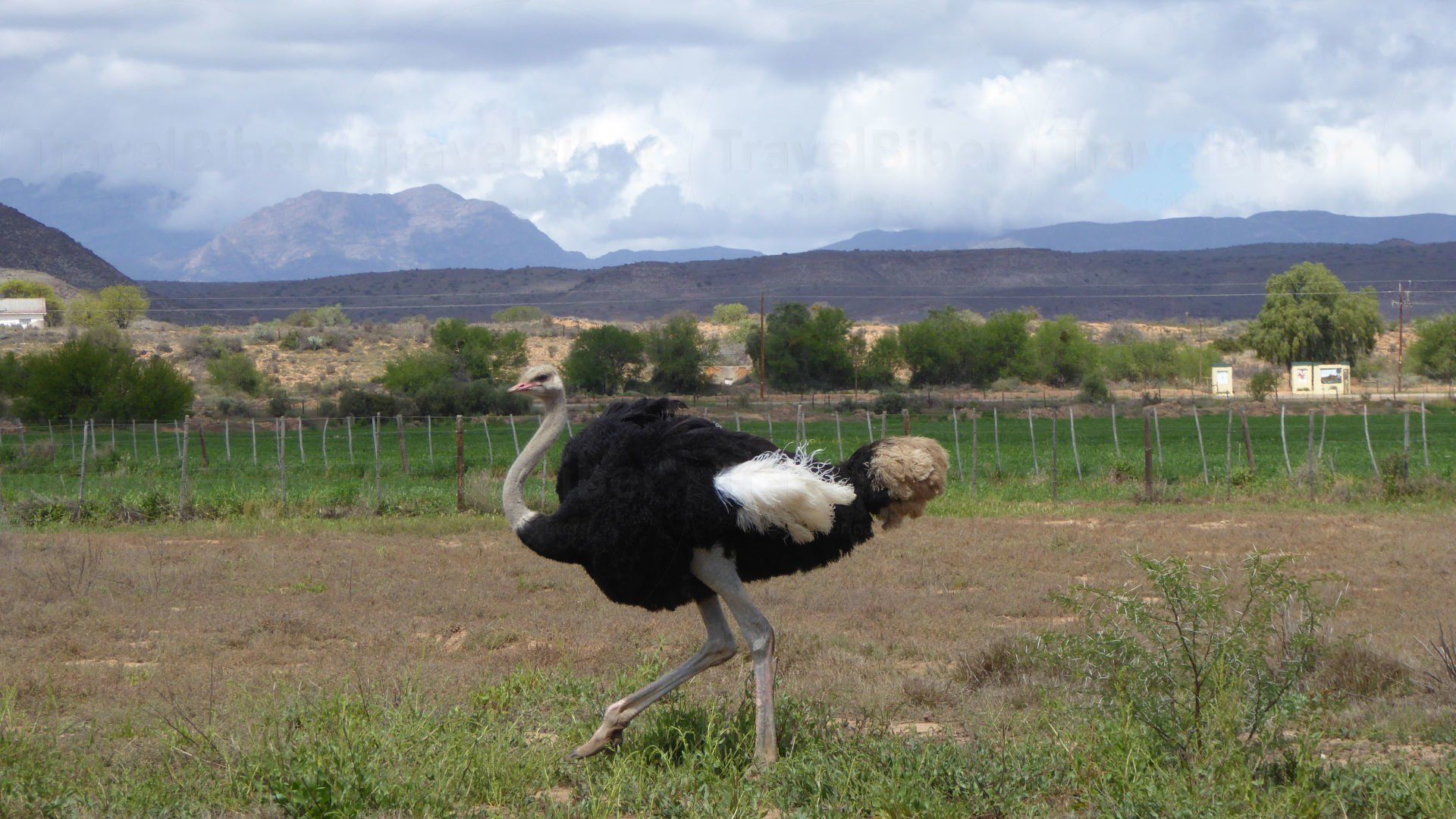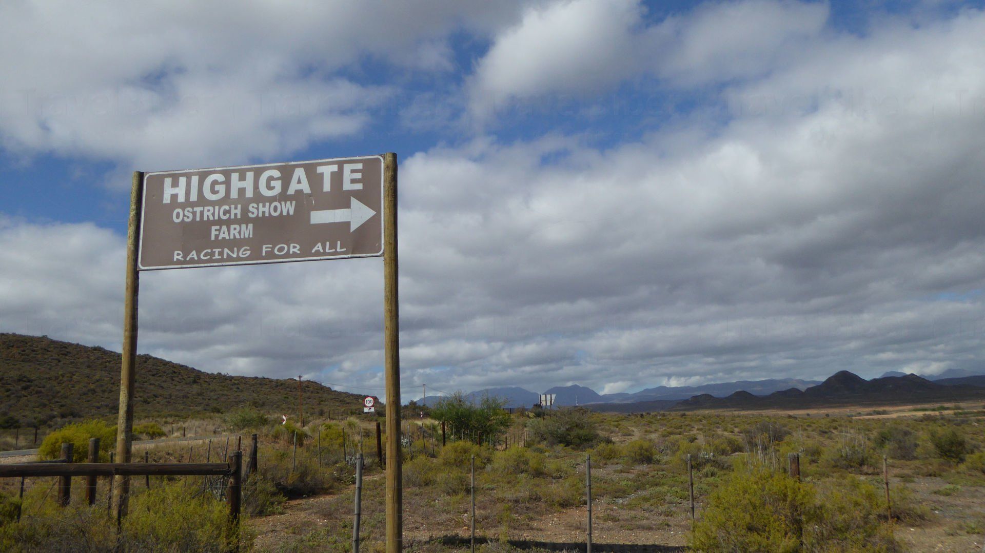 Kleinen Karoo, einer Halbwüstenlandschaft in Südafrika. Der Ort Oudtshoorn ist zudem Zentrum der Straußenzucht in Südafrika.
