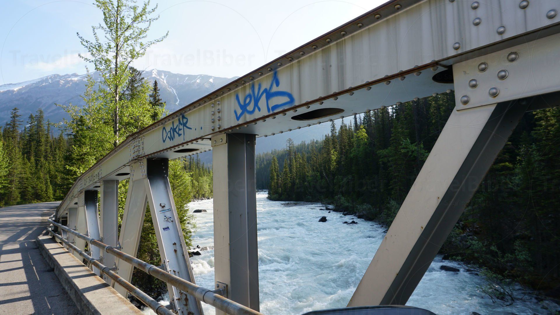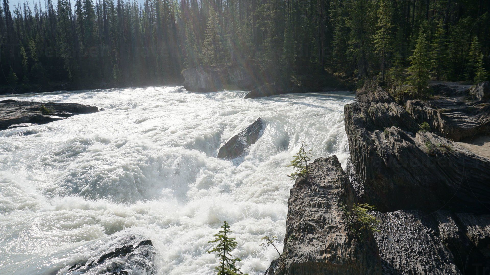 liegt die sog. Natural Bridge. Hier schießt tosend das Wasser durch einen Bogen, den das Wasser des Kicking Horse River