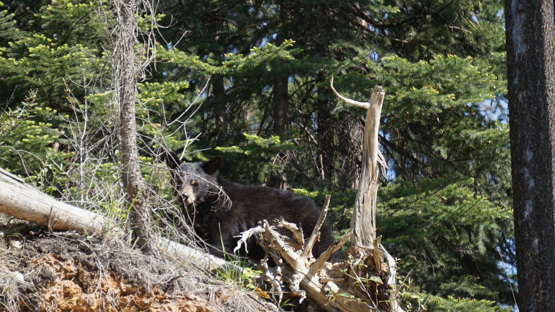 Auf dem Rückweg vom Emerald Lake, ein Schwarzbär, ein wirklich hübsches Tier, rabenschwarz mit langen Ohren.