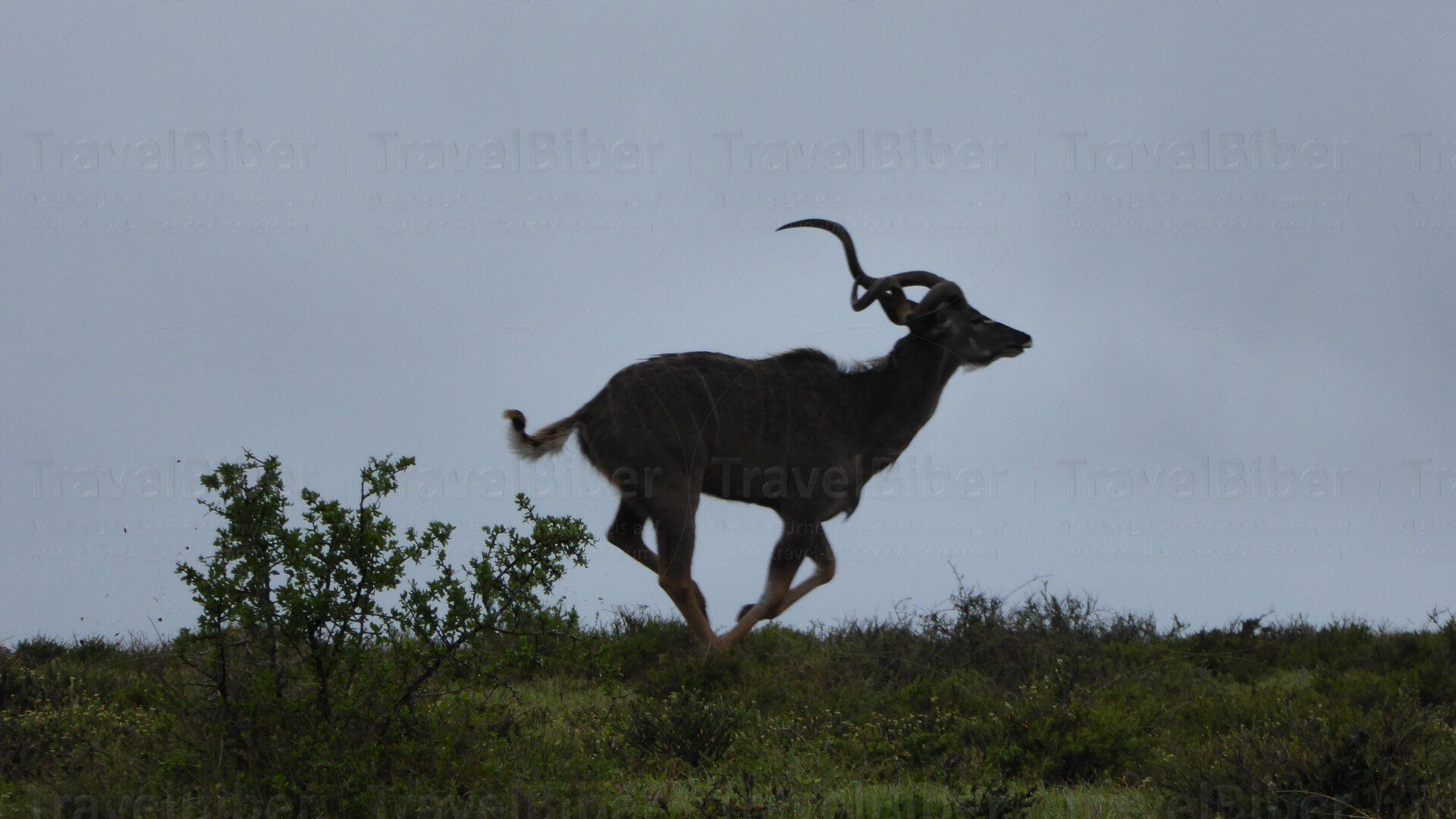 Ein rennendes Kudu im Abendlicht.