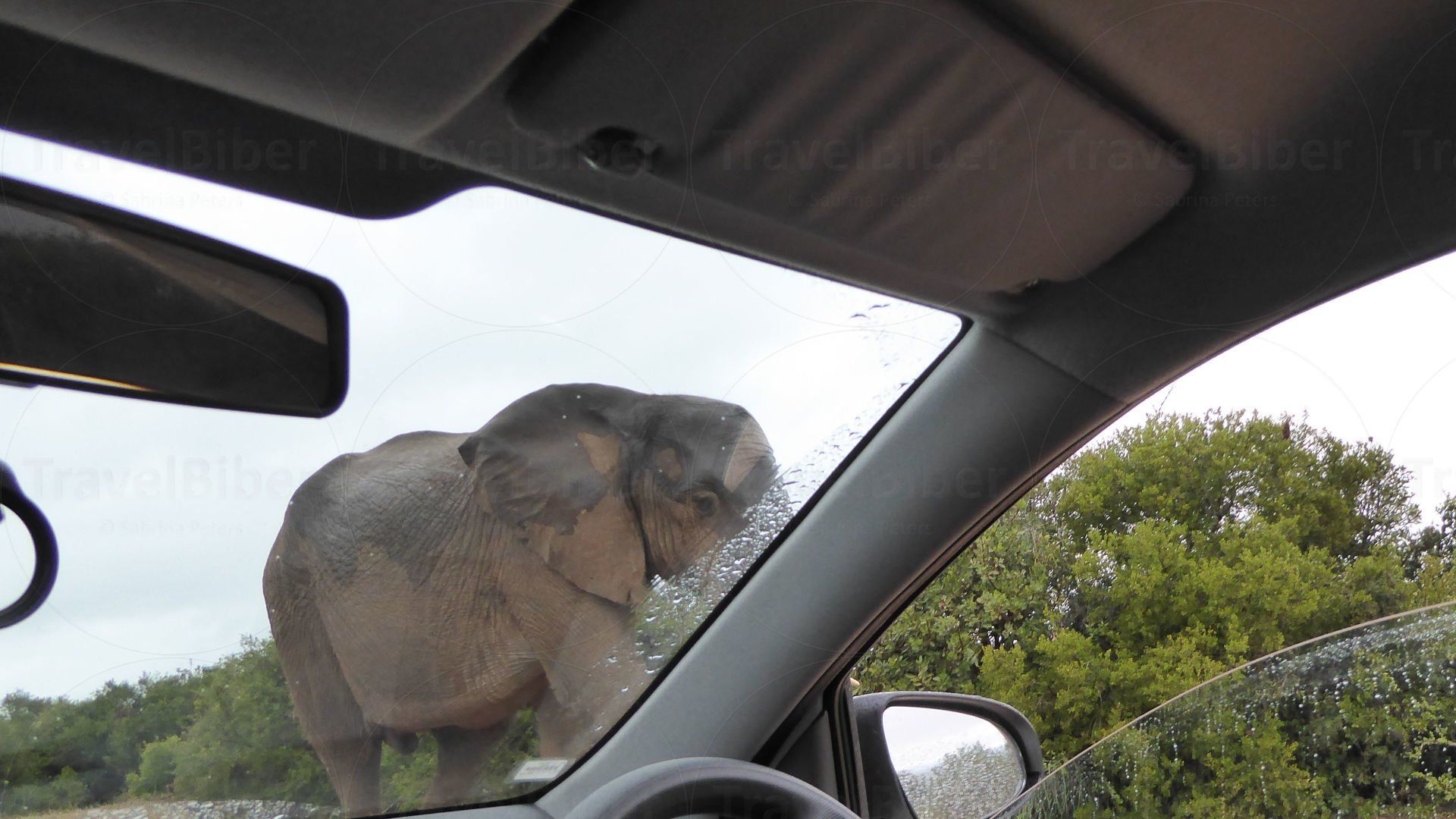Elefanten direkt am Autofenster.