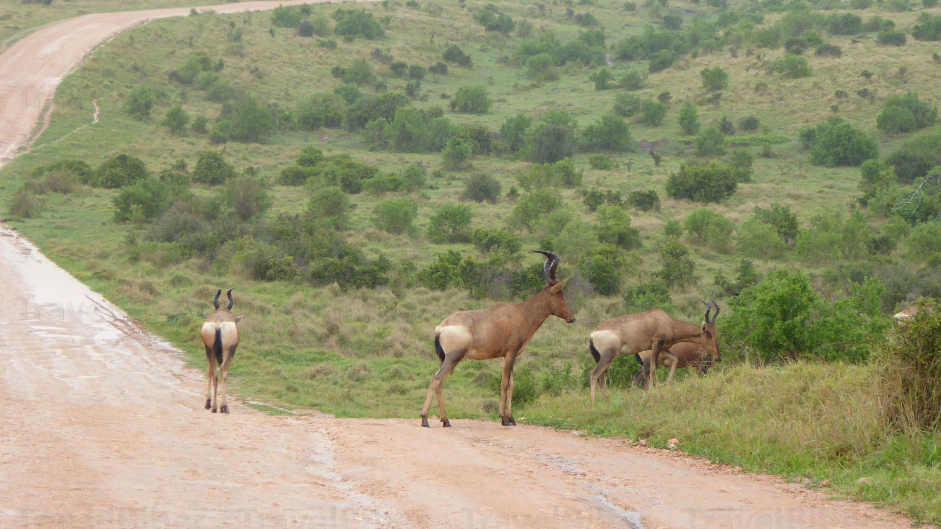Eine Antilopenherde überquert den Weg.