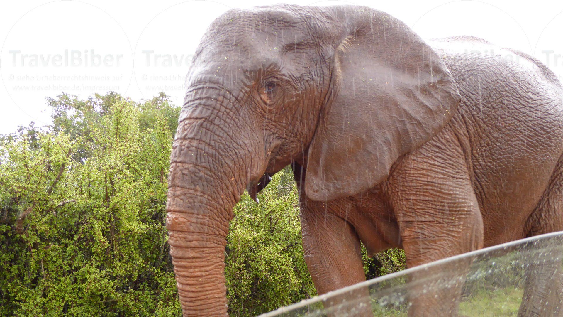 Elefanten im Regen, mal ein etwas anderer Anblick als sonst.