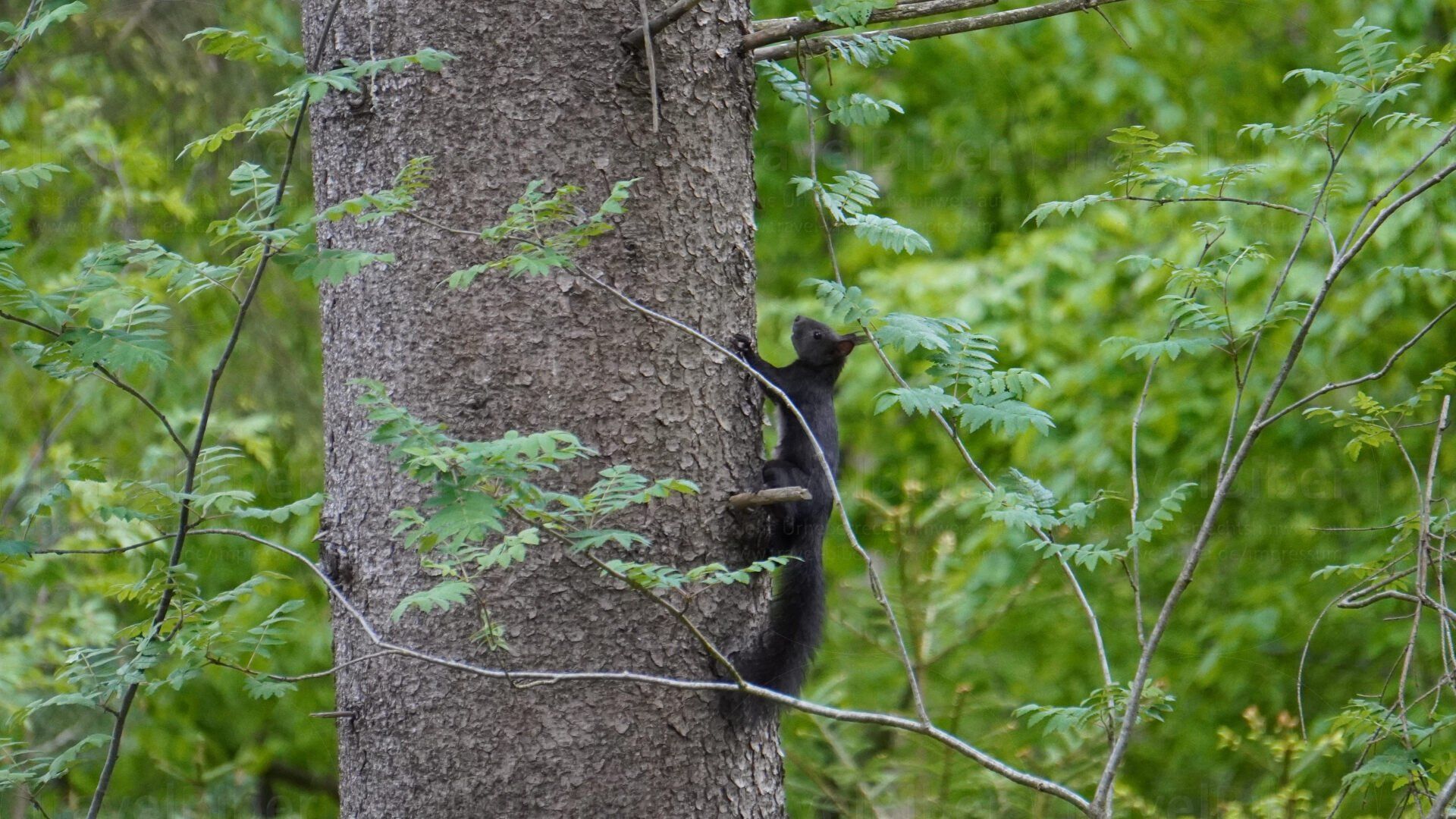 Schwarzes Eichhörchen im Wald hinter Mittelbiberach.