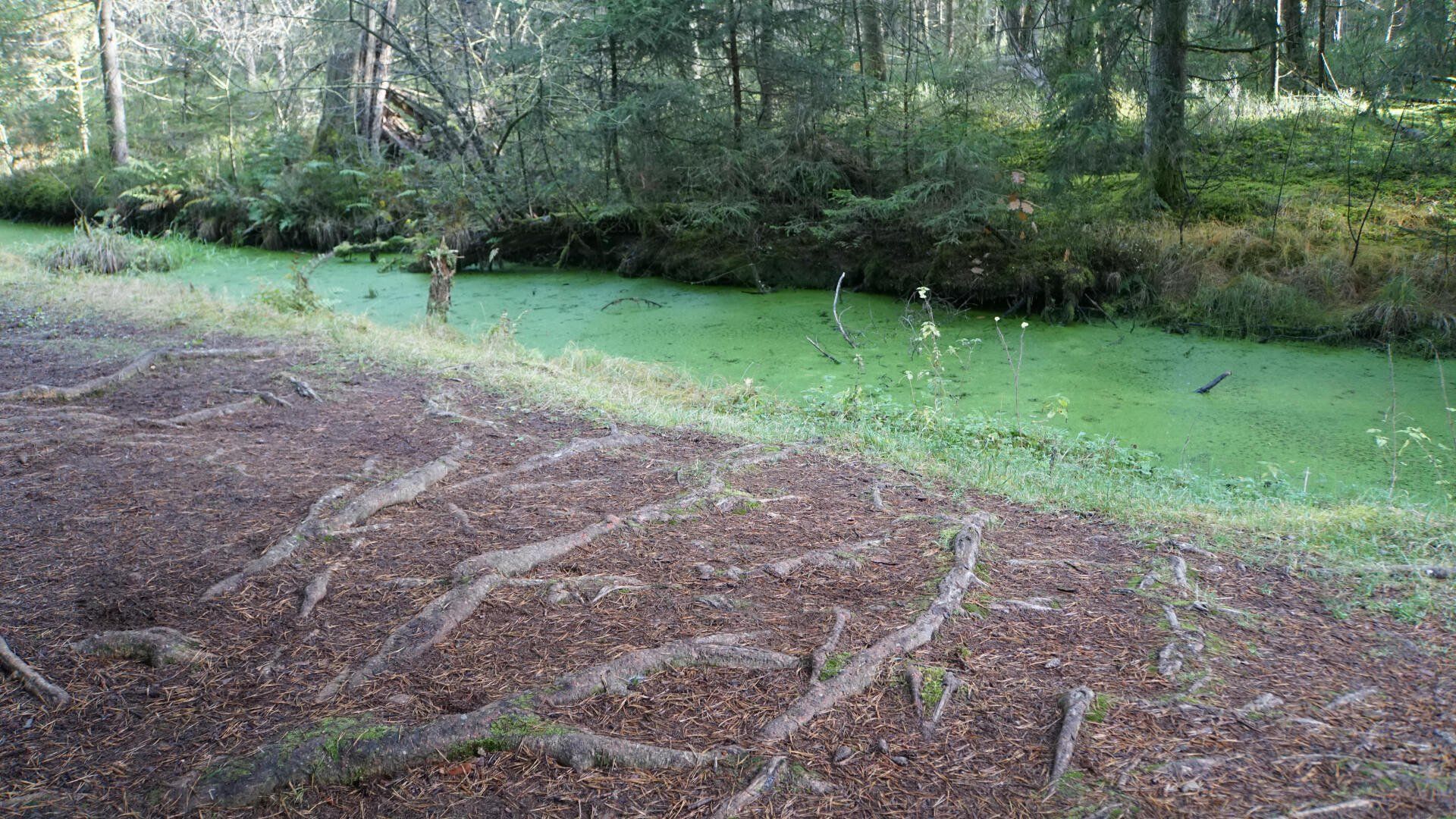 Blick runter vom Bannwaldturm in das Moor und Bannwald.