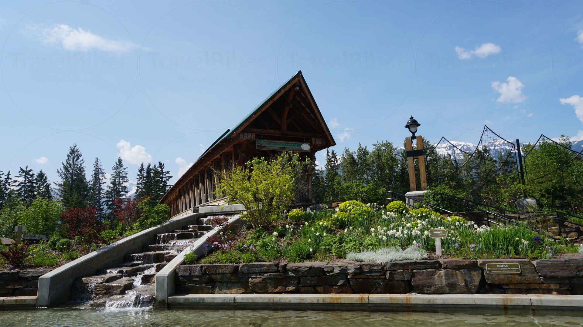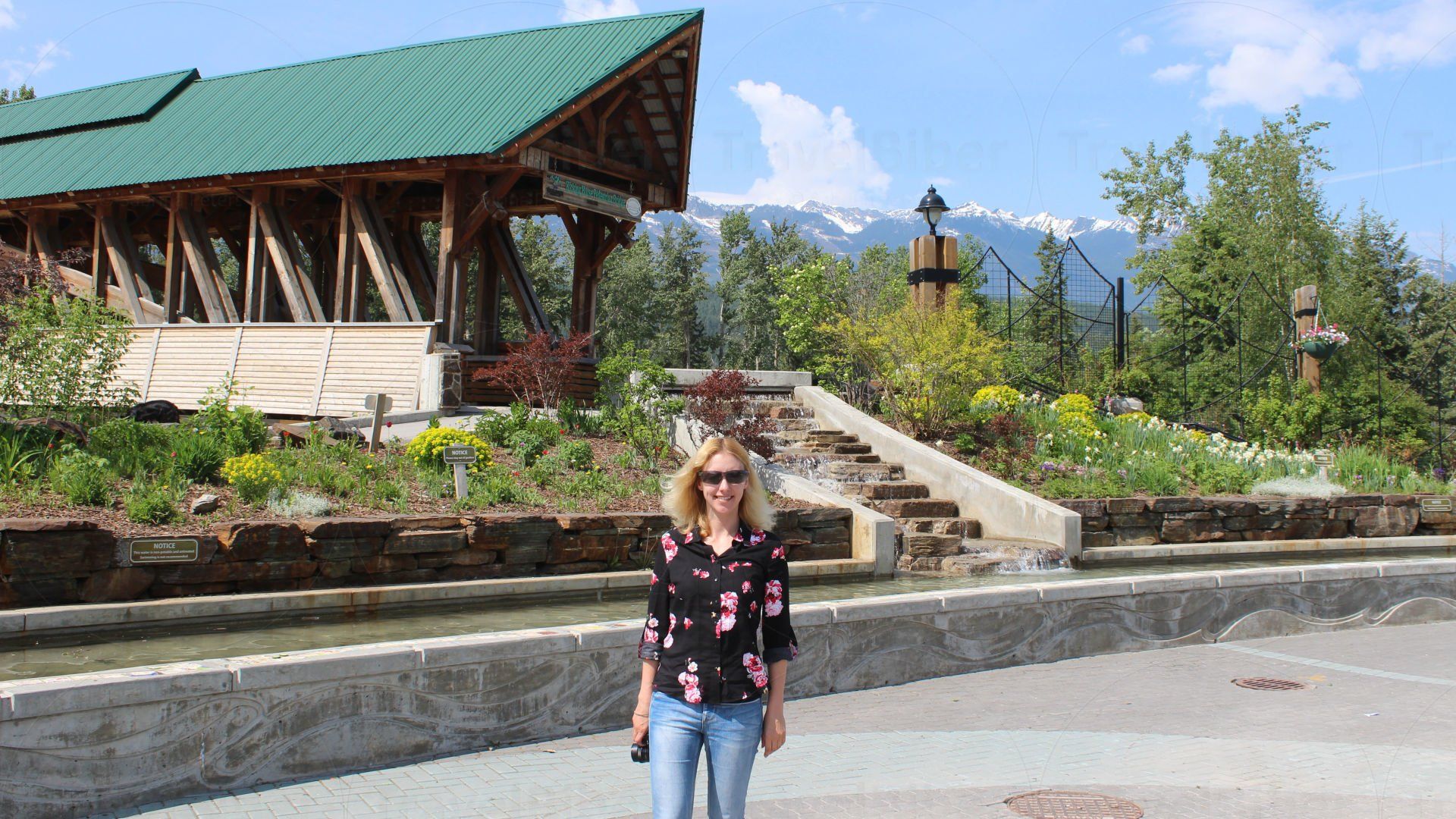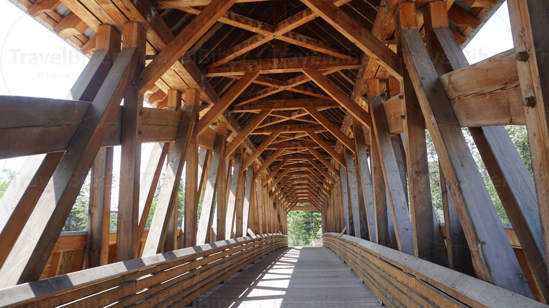 Besuch der Kicking-Horse-Fußgängerbrücke, der Kicking Horse Pedestrian Bridge, angeblich längste freigespannte Fachwerk-Brücke in Kanada.