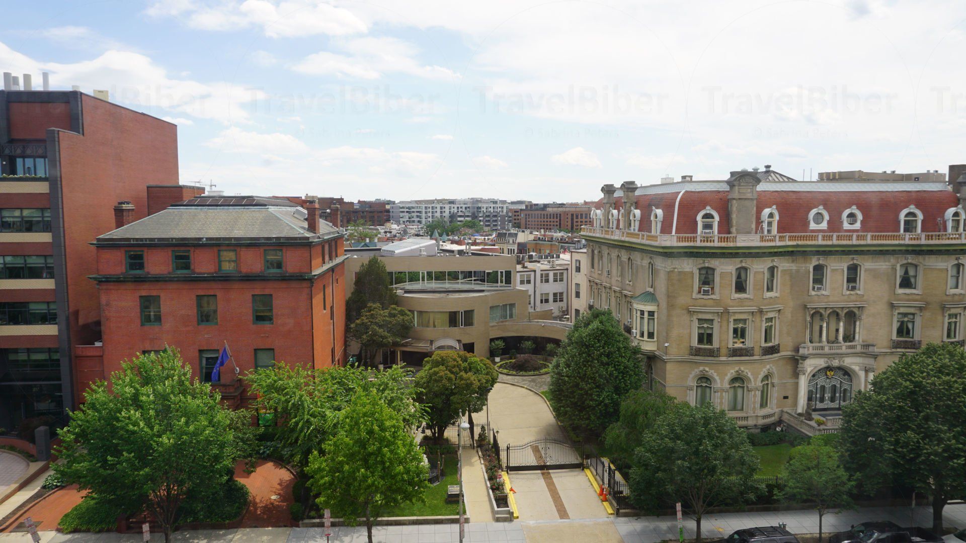 Blick aus dem Hotelzimmer auf das "Botschaftsviertel" von Washington, D.C.