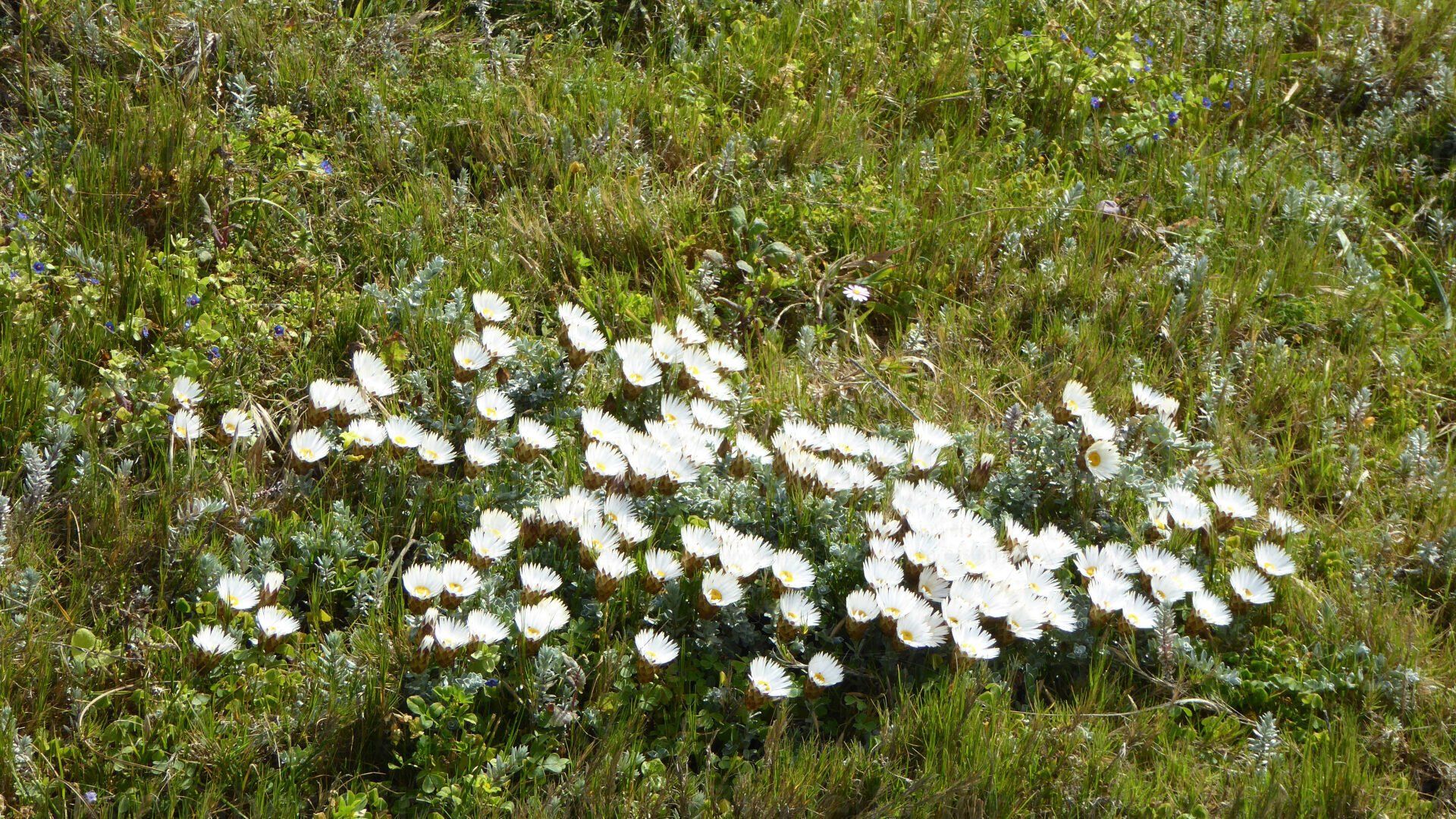 Die Landschaft besteht nur aus Gräsern und Büschen; es gibt keine Bäume.