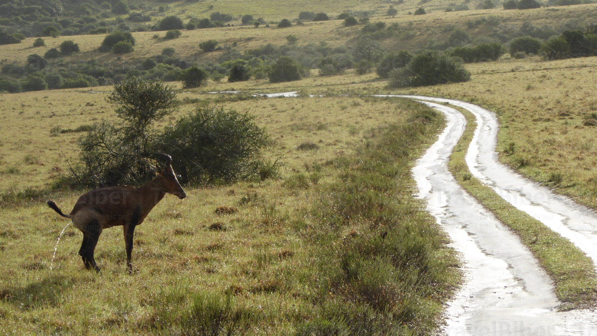 ...bei Einfahrt ins Game Reserve, mit Blick auf eine Antilope.
