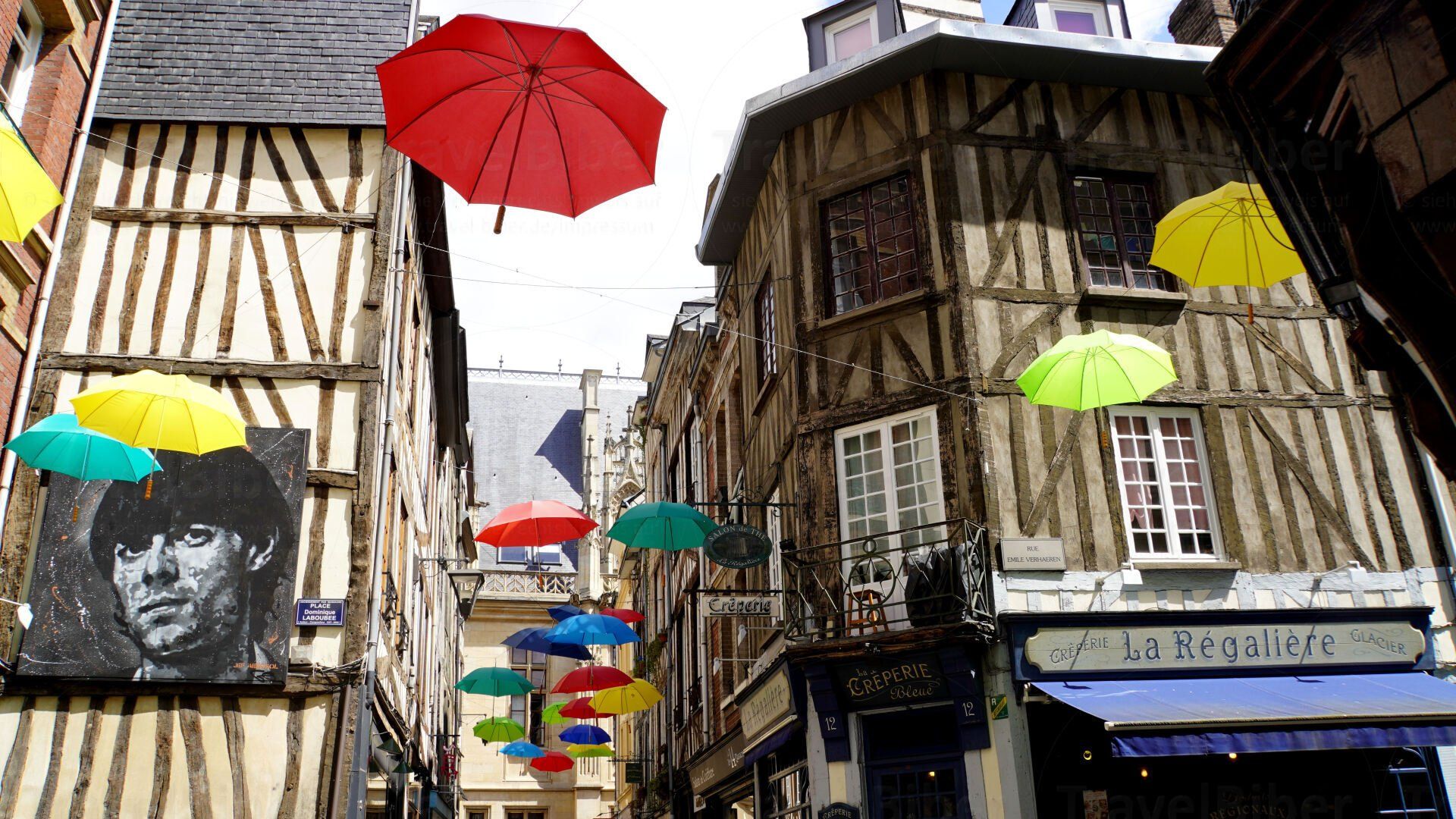Die Regenschirmdeko hab ich jetzt schon in mehreren Städten gesehen.