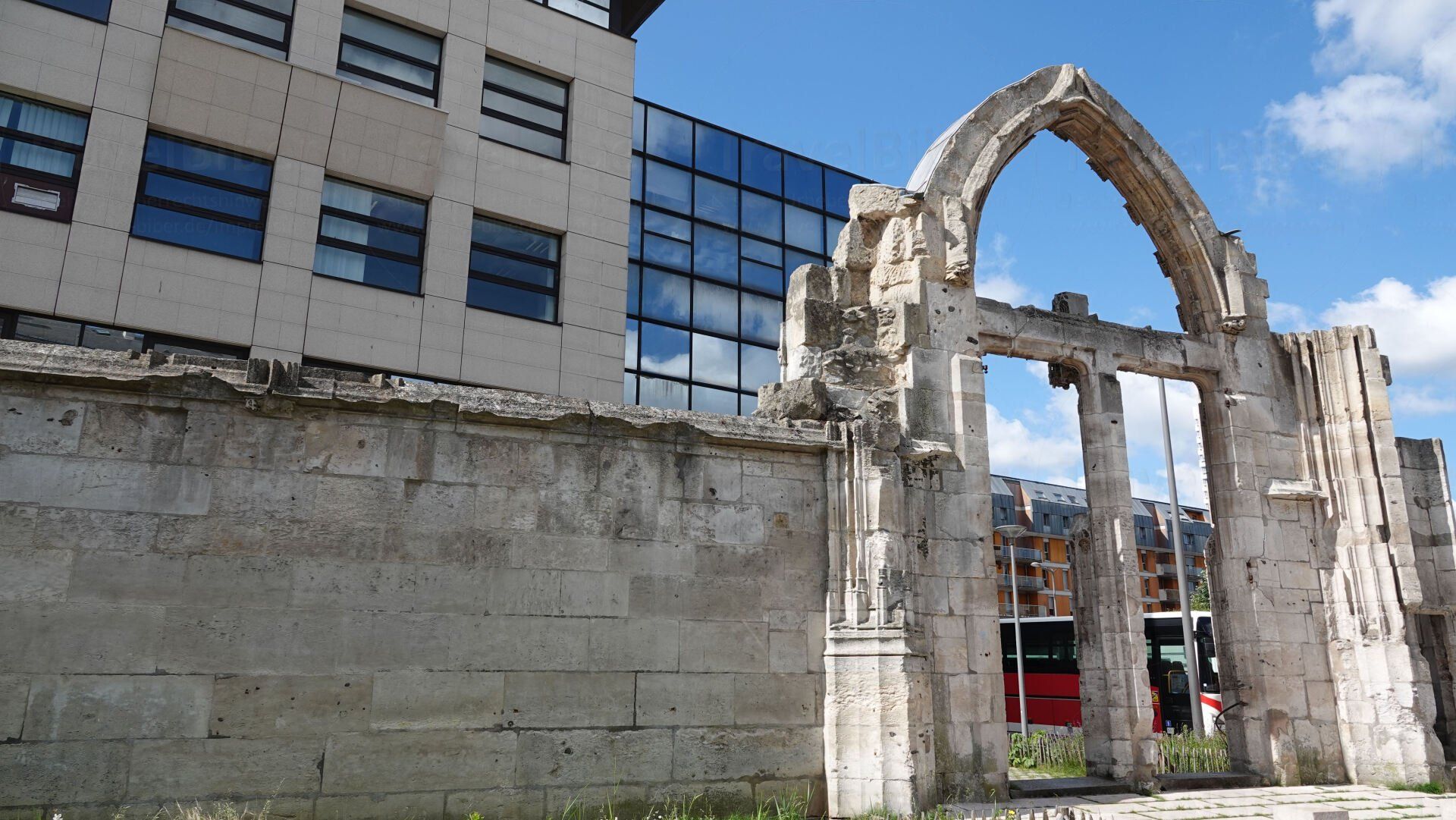Überall in der Stadt gedenken Ruinen an den zweiten Weltkrieg.