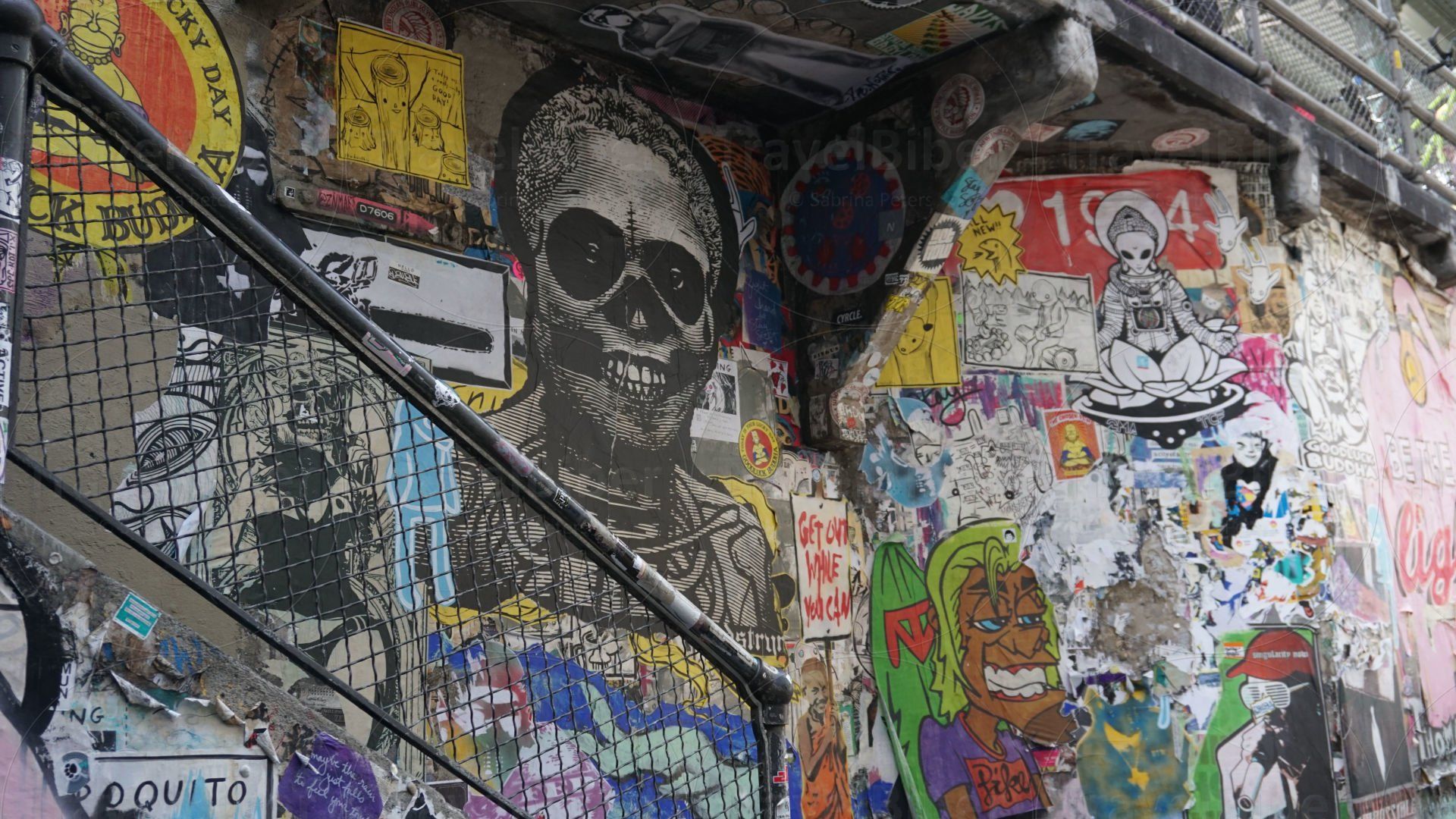 Unterwegs in der Post Alley, eine Mischung aus Graffiti und Kaugummis an der Wand.