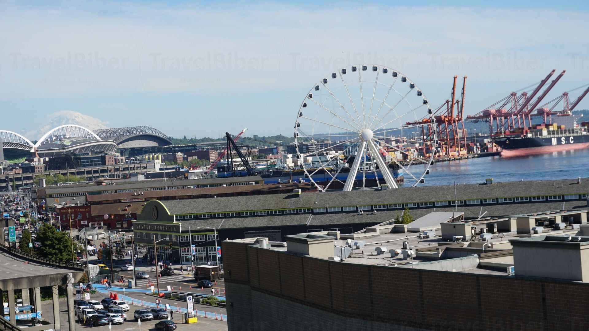 - Blick runter auf den Hafen von Seattle.