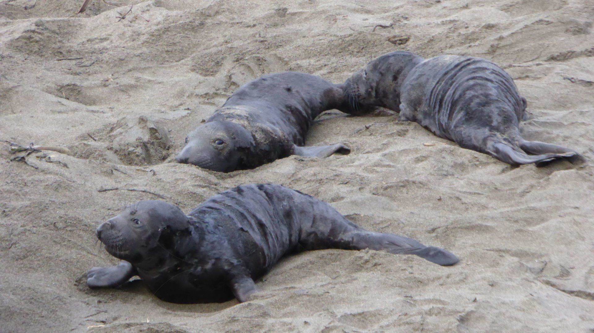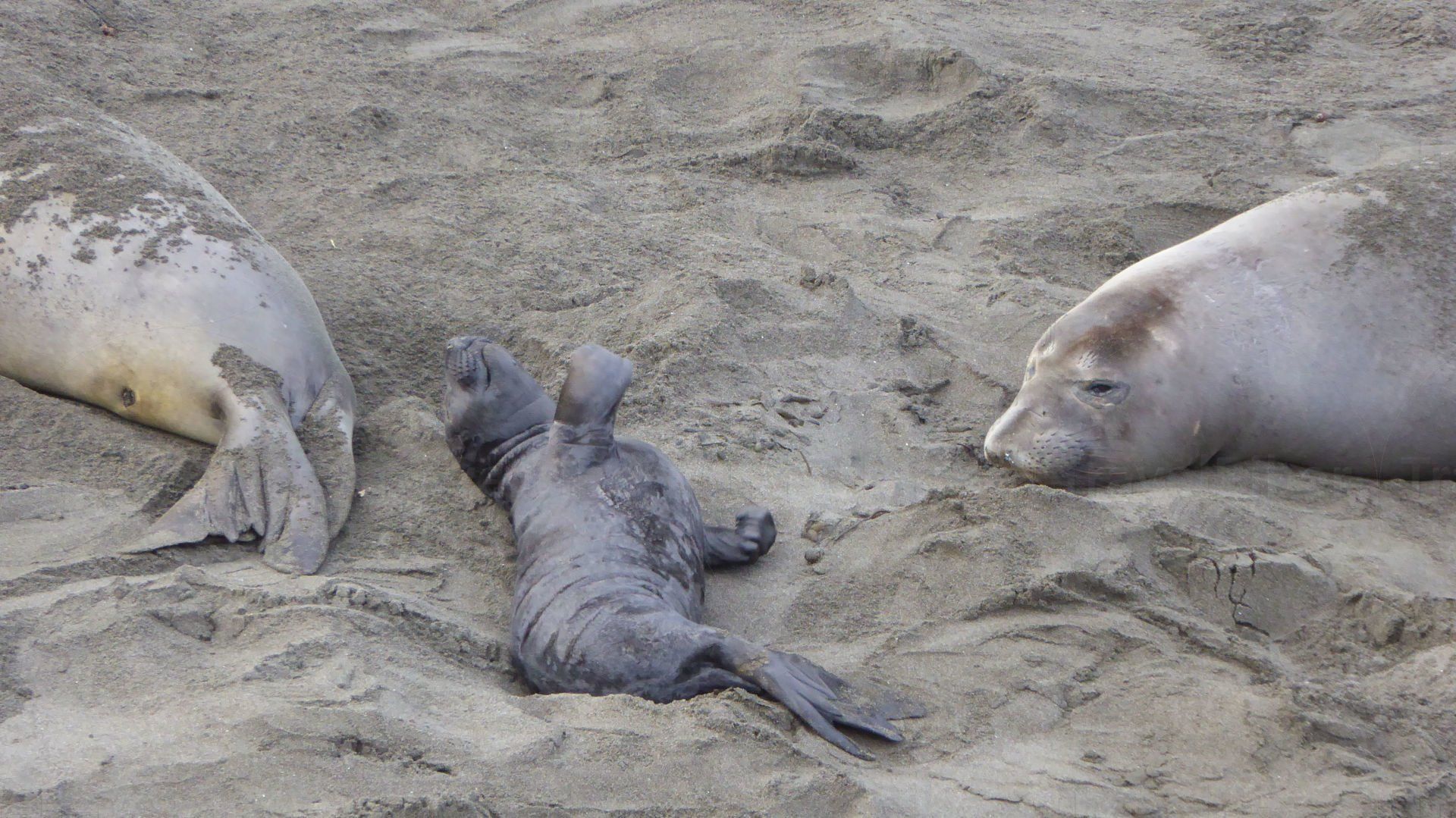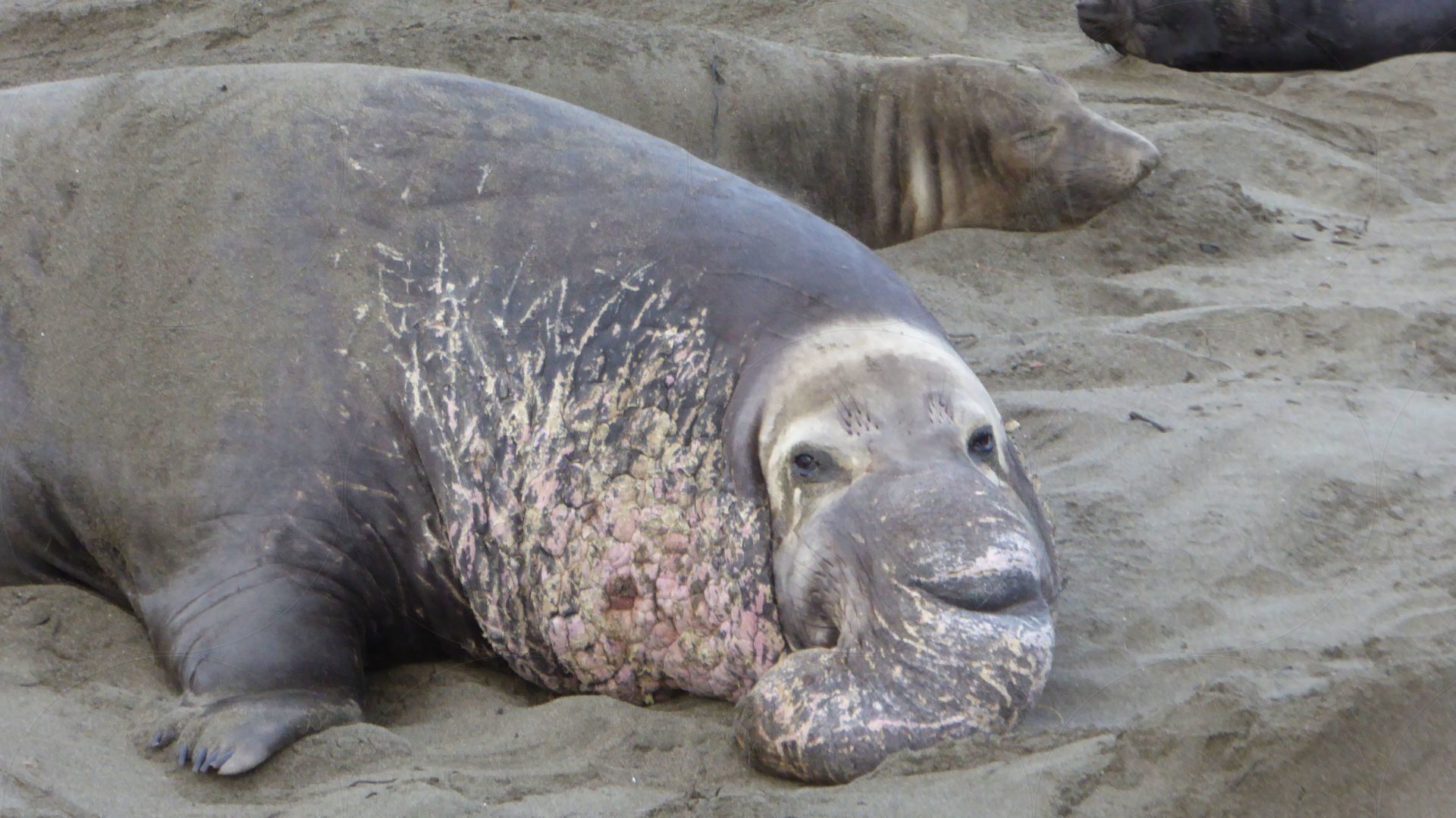 Der Seeelefantenbulle buddelt am Strand. Das sah sehr lustig aus.