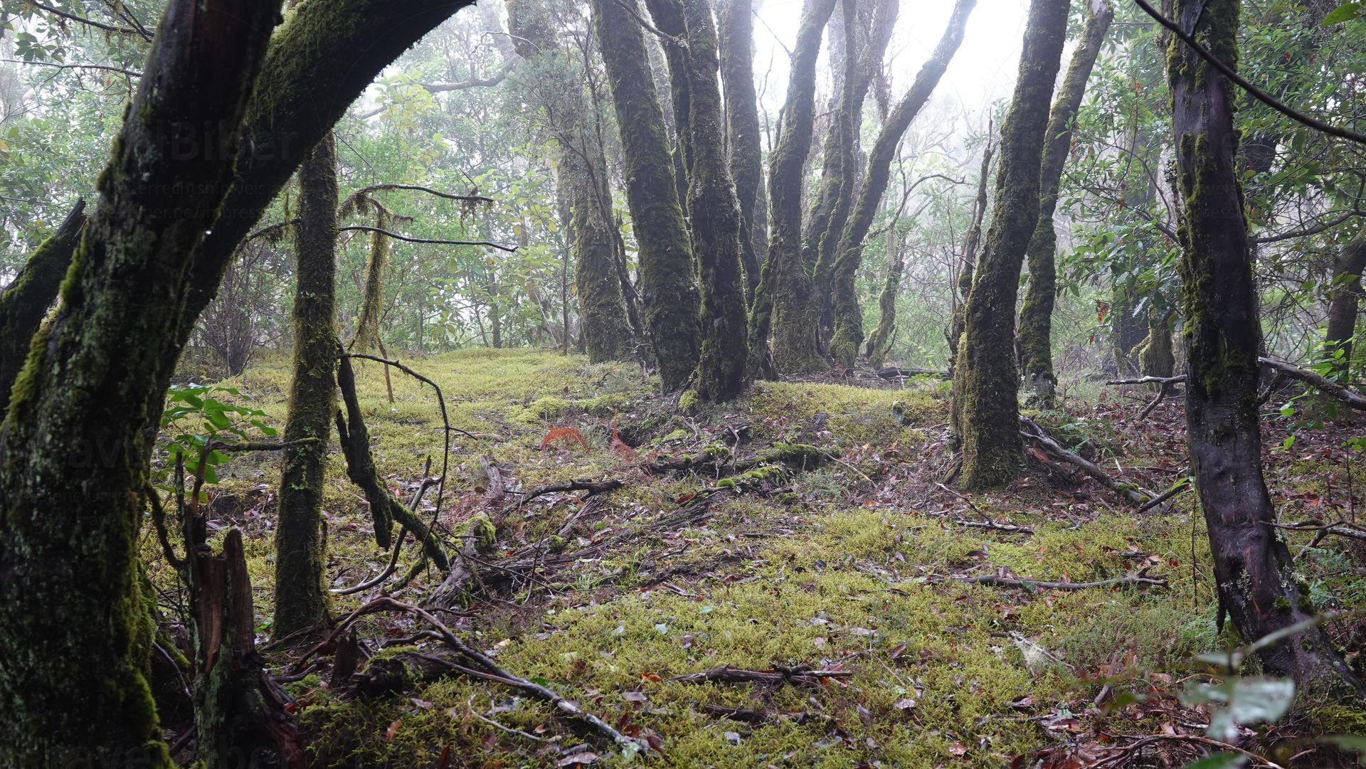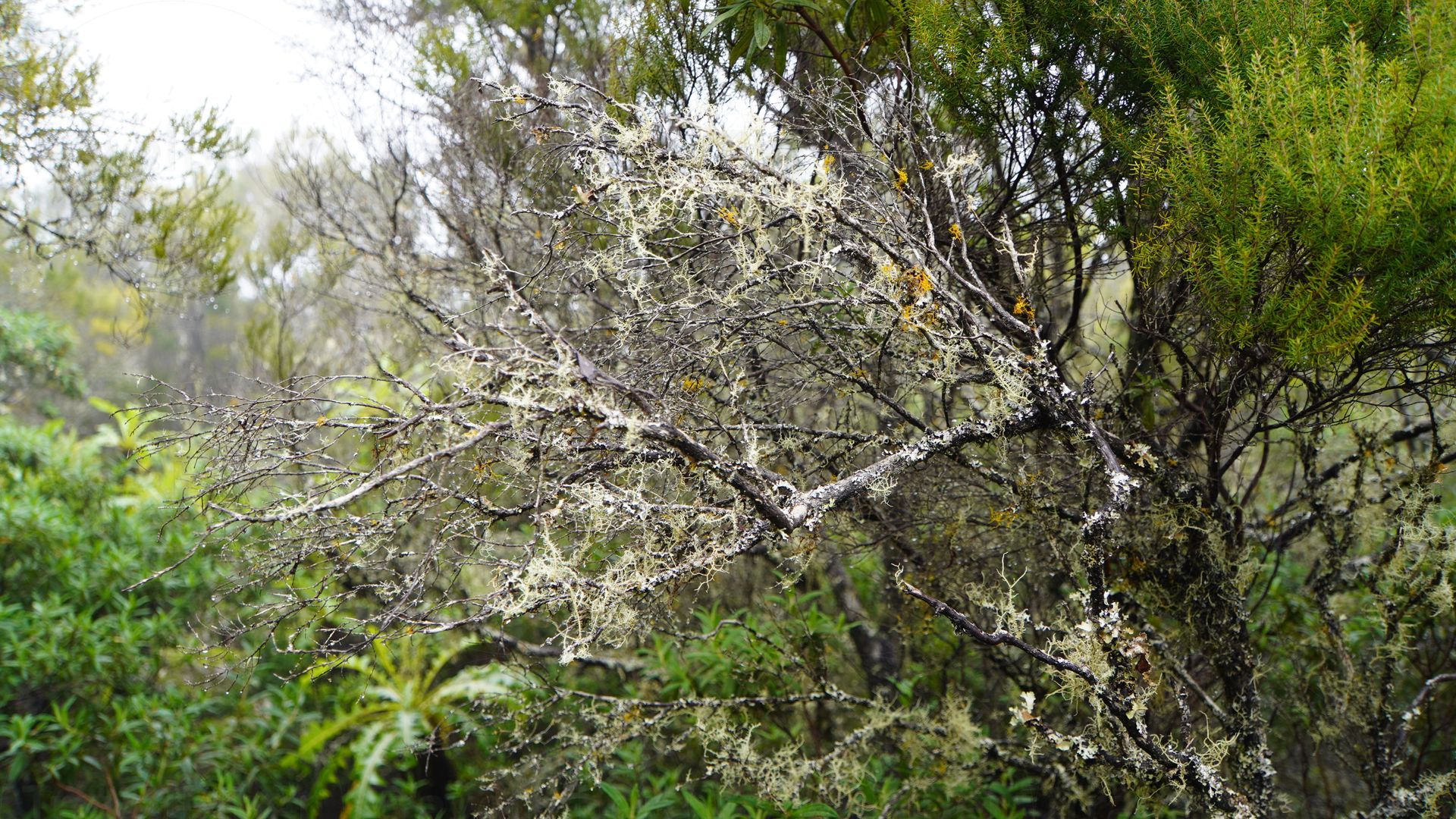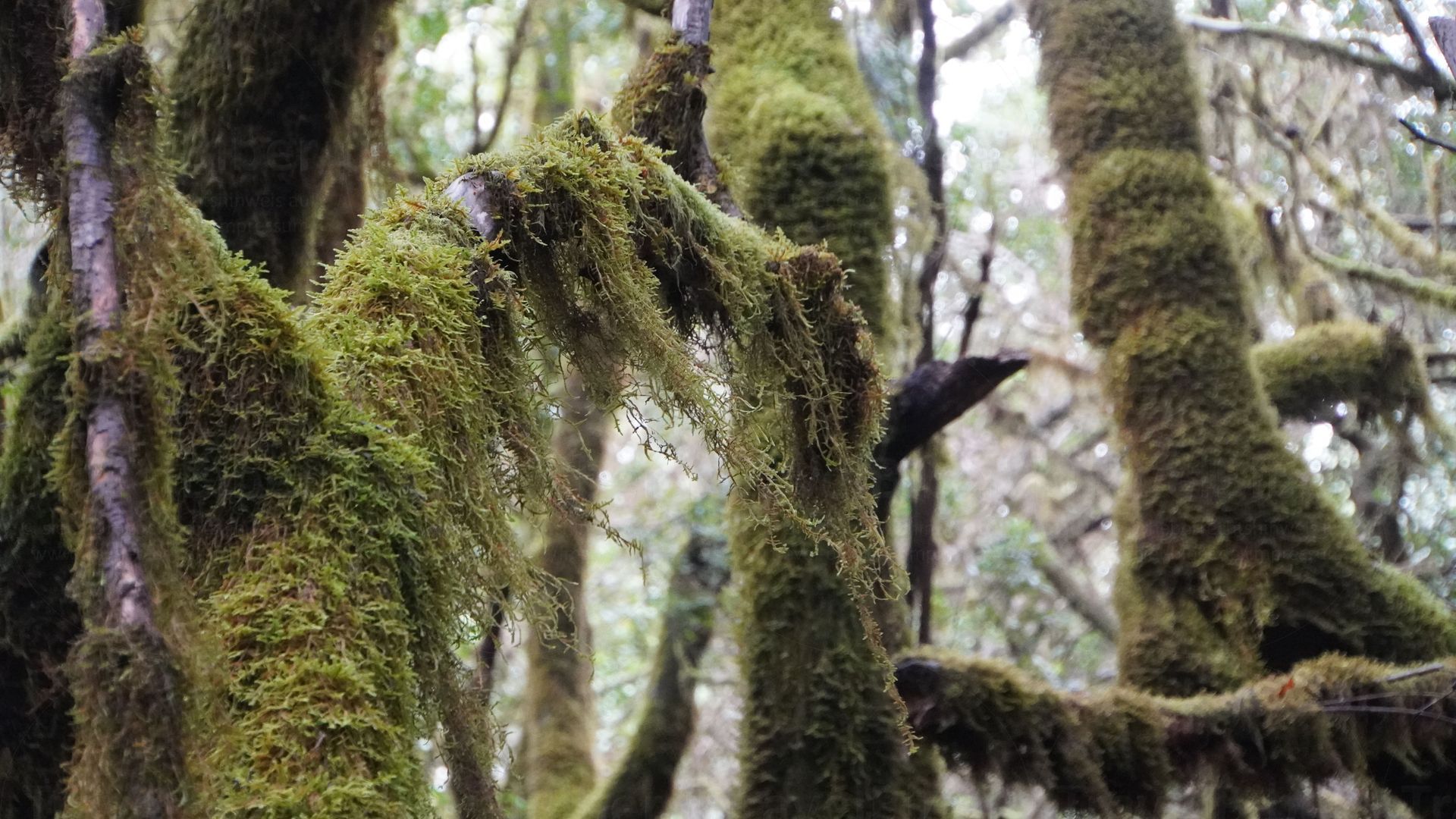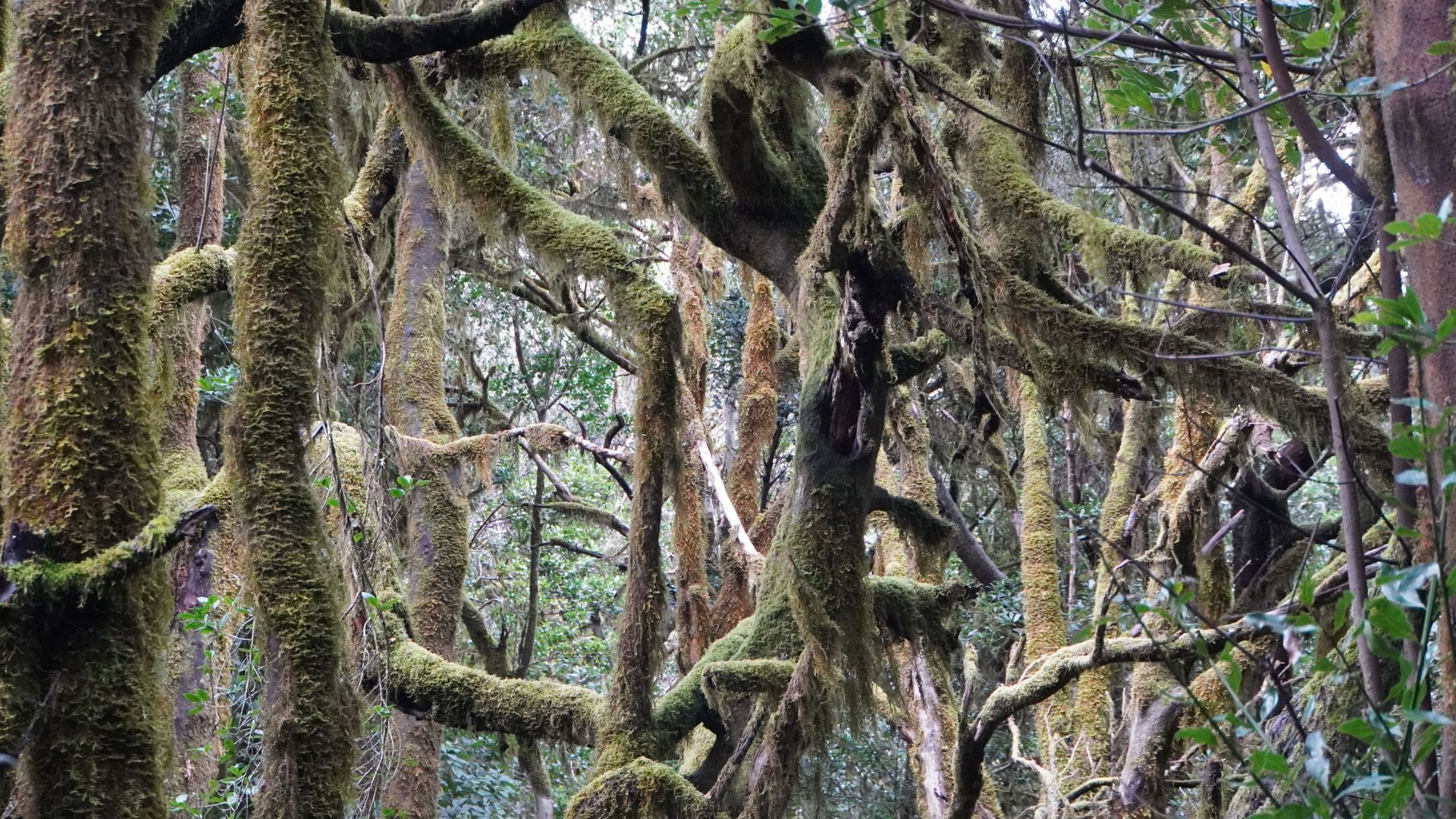 An den Bäumen hängen Flechte und wachsen Moose, aufgrund der andauernden Feuchtigkeit.