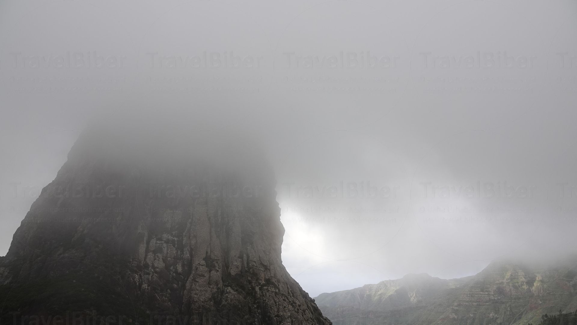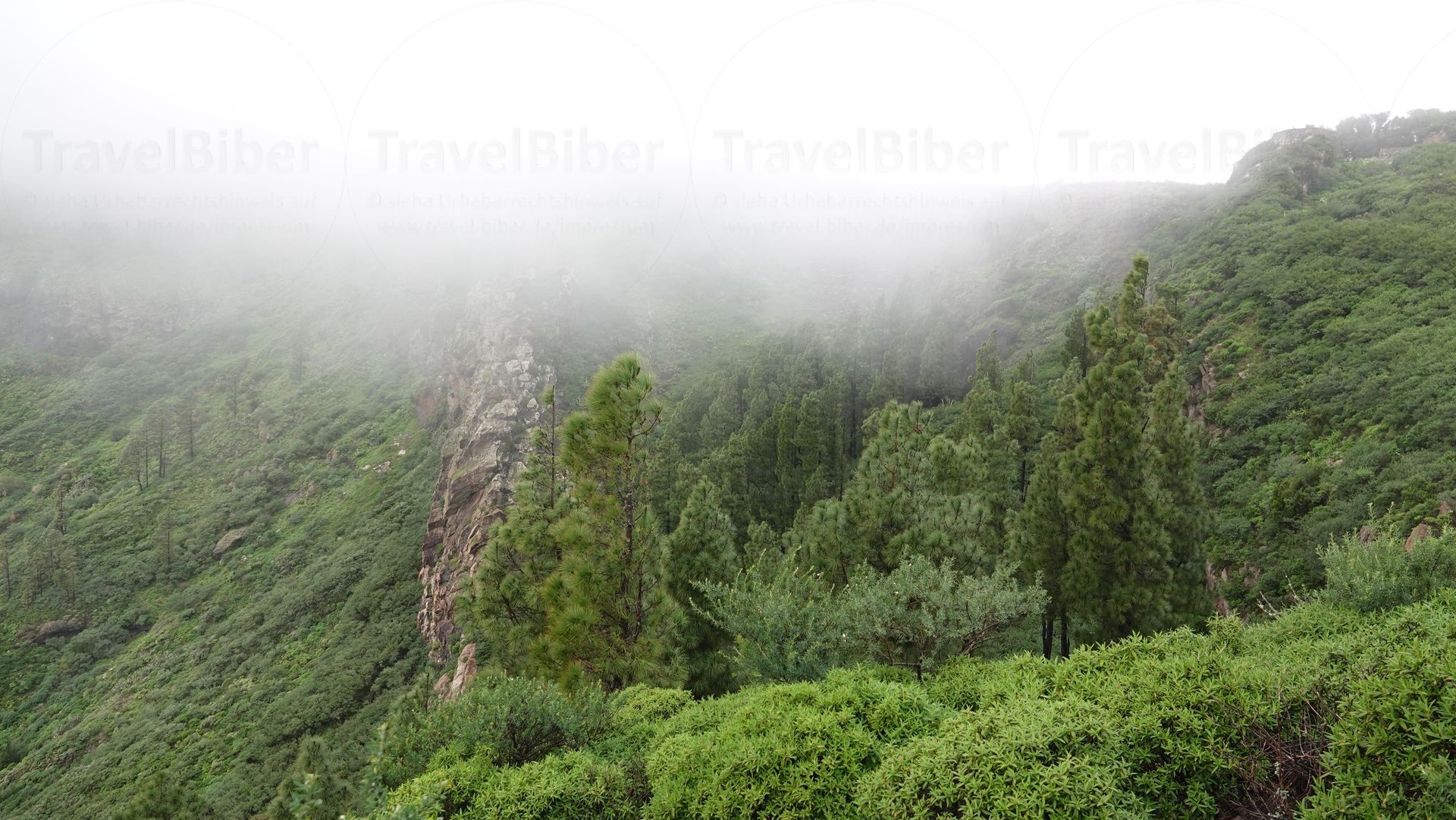 Leichten Nebel hat es auch gerne am Fuße des Roque Agando, einem Vulkanschlot, am östlichen Eingang des Nationalparks.