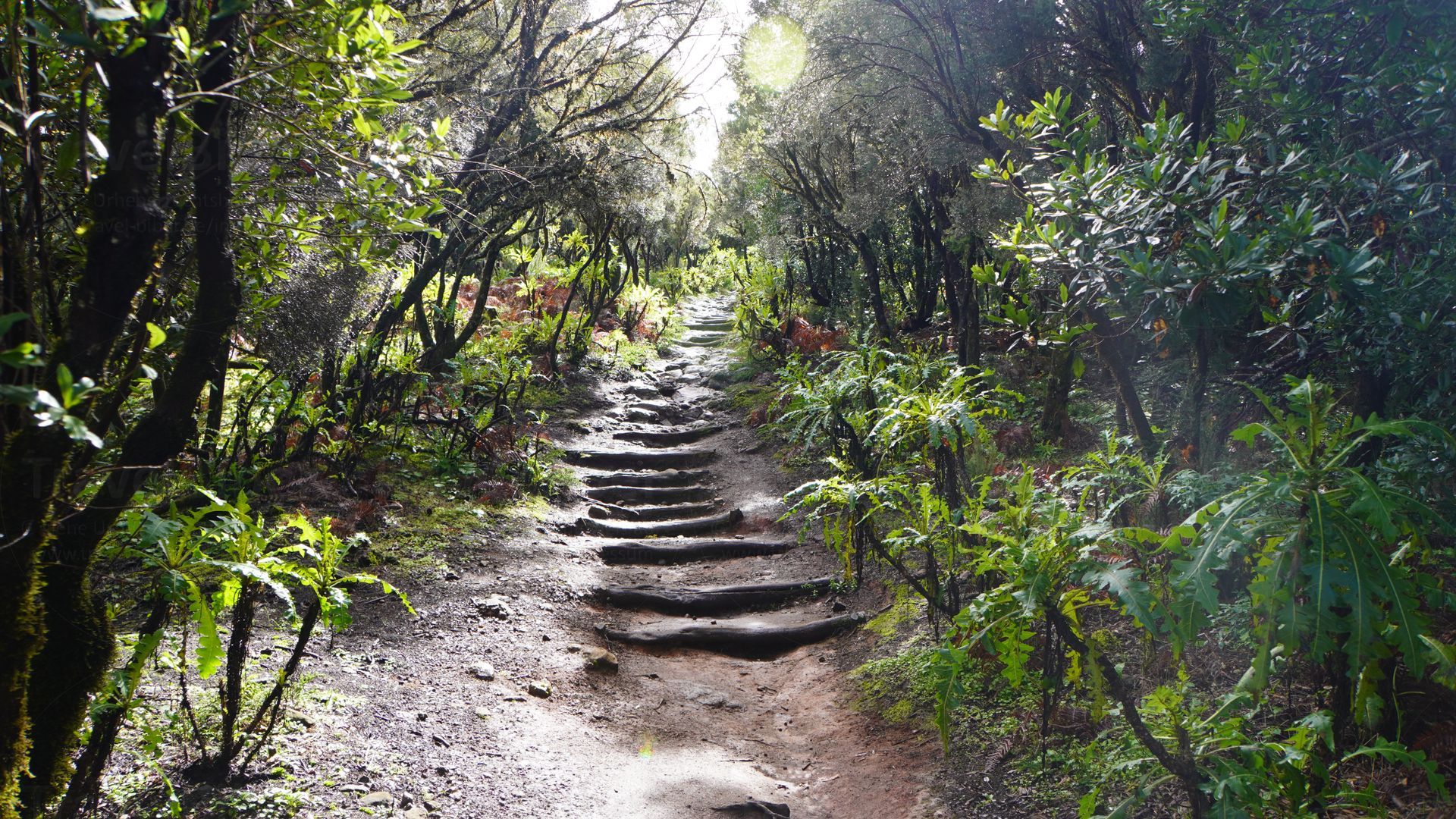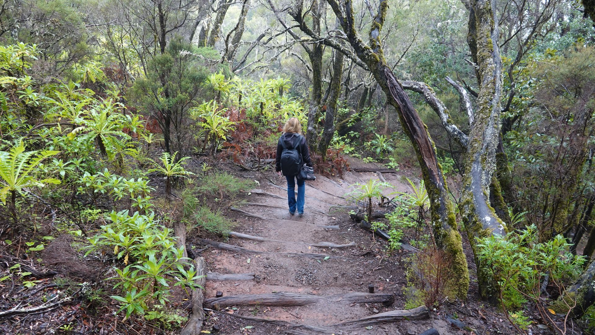 Am Rande des Nationalparks führt ein Pfad mitten durch dichten Wald zu einem Aussichtspunkt.