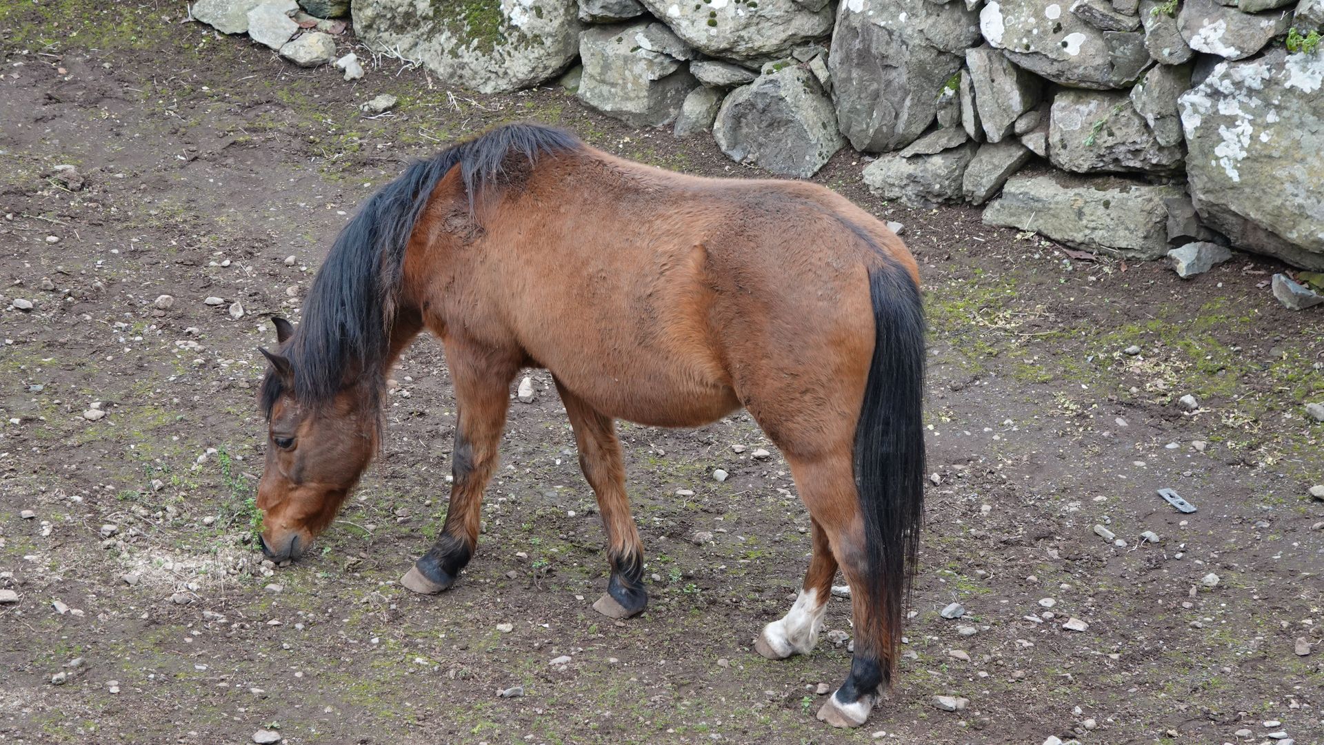 Von der Bar aus Blick auf ein Pferd auf einem nahen Bauernhof ...