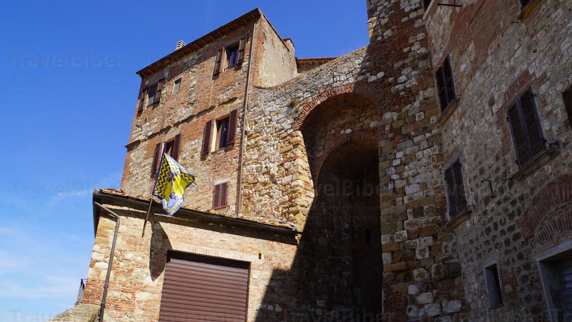 ist passiert, durch die Stadtmauer hindurch, vom Parkplatz bei der Renaissancekirche San Biagio