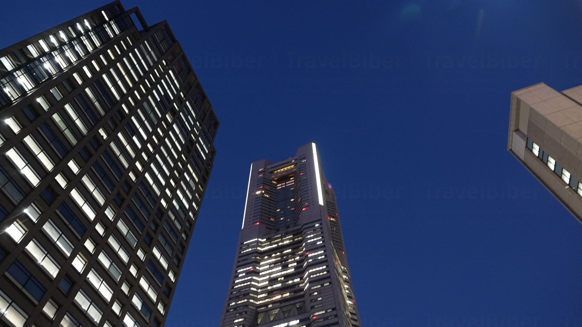Dann geht es noch zu den Wolkenkratzer im Viertel Minato Mirai 21. Inzwischen ist es dunkel geworden.