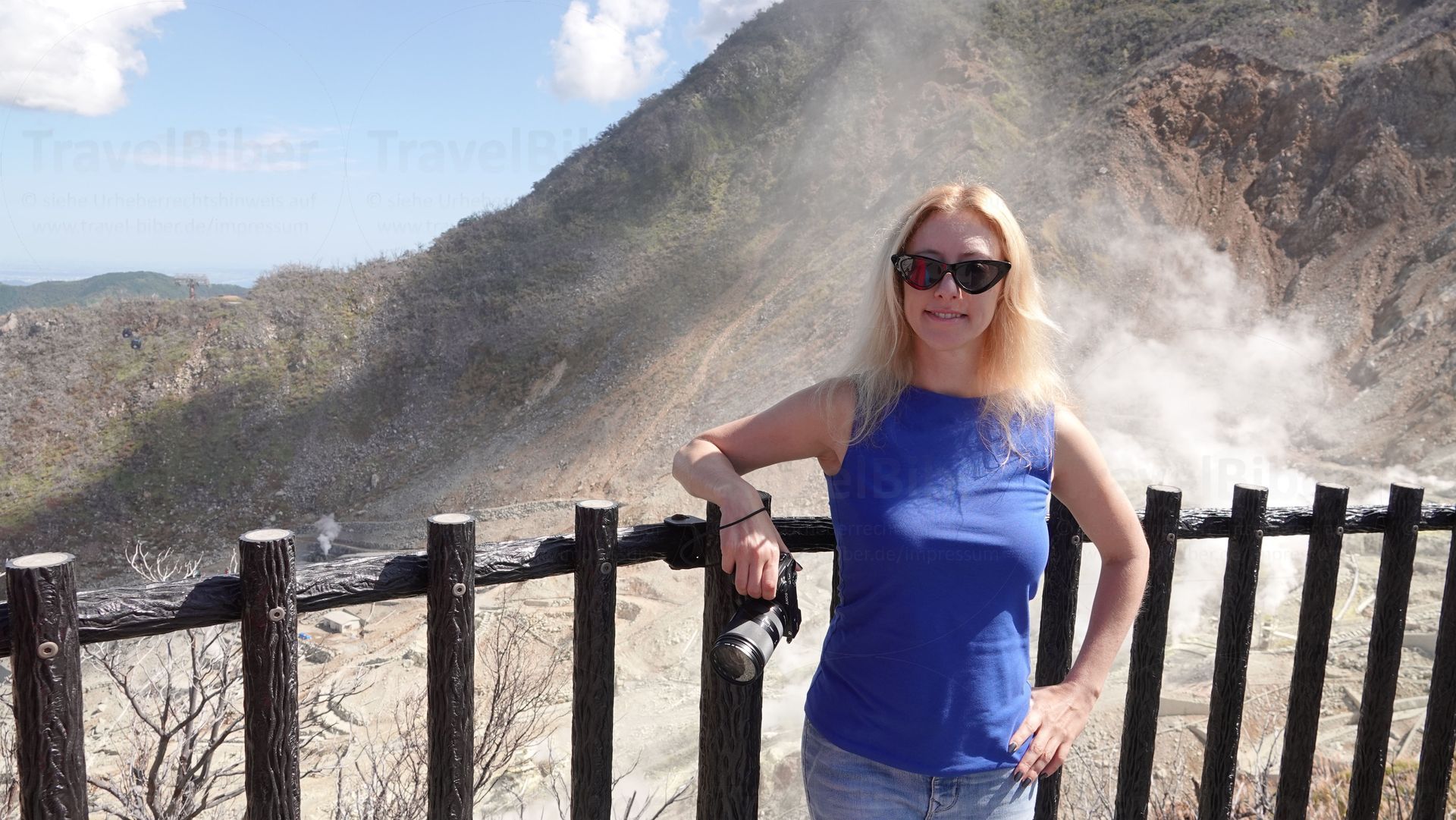 Owakudani Station aus. Hinter mir dampft es und es riecht nach faulen Eiern.