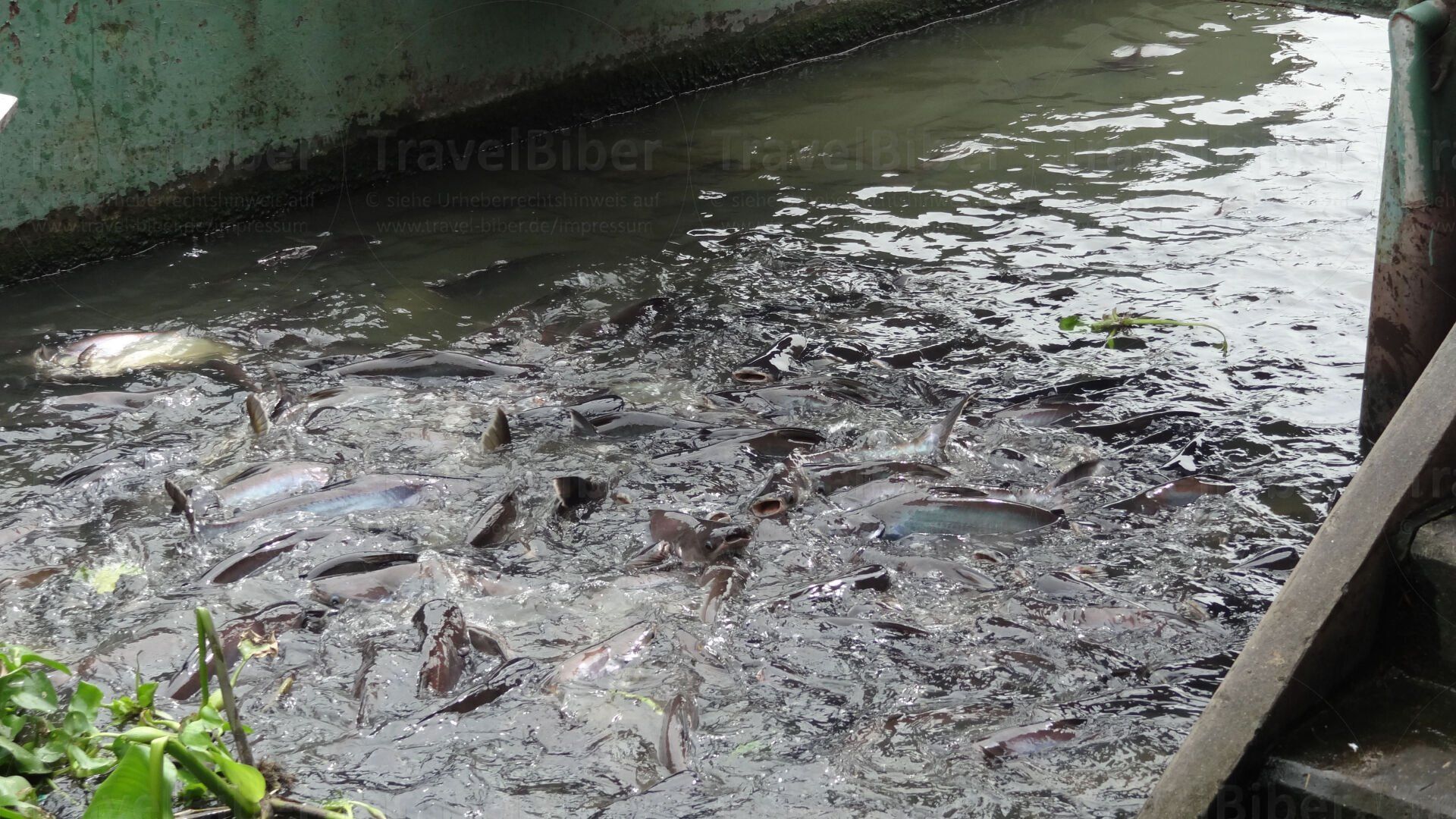 Fahrt durch die Klongs von Thonburi, ein Stadtteil von Bangkok, hier kurz vor einer Schleuse.