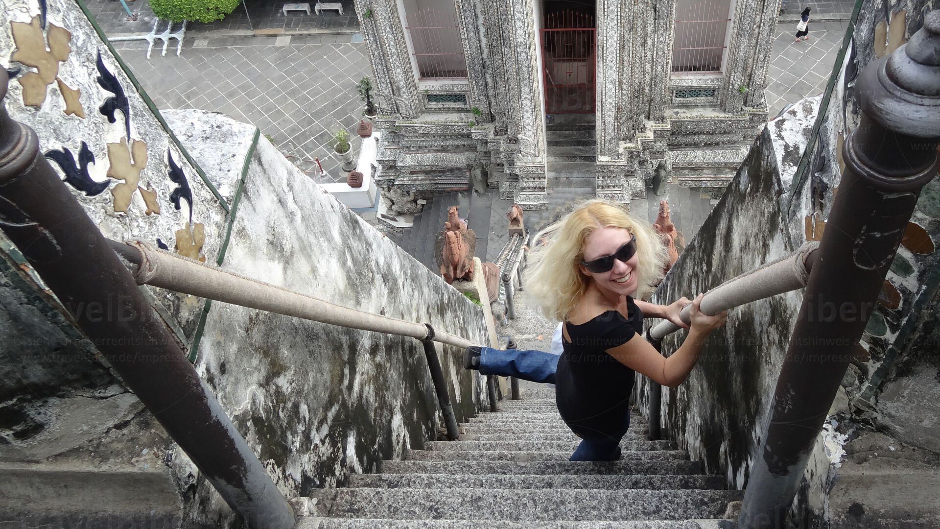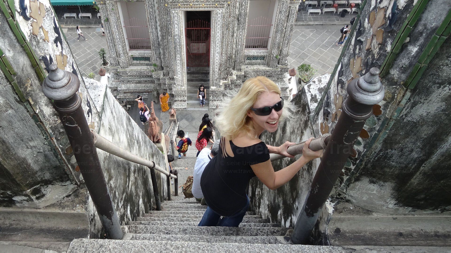 Vor dem Wat Arun, Tempel der Morgenröte.