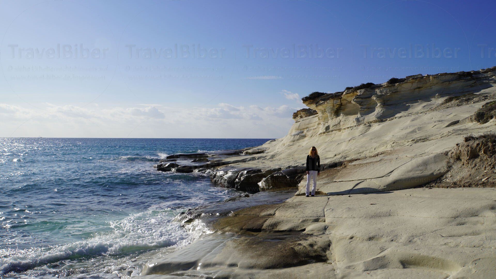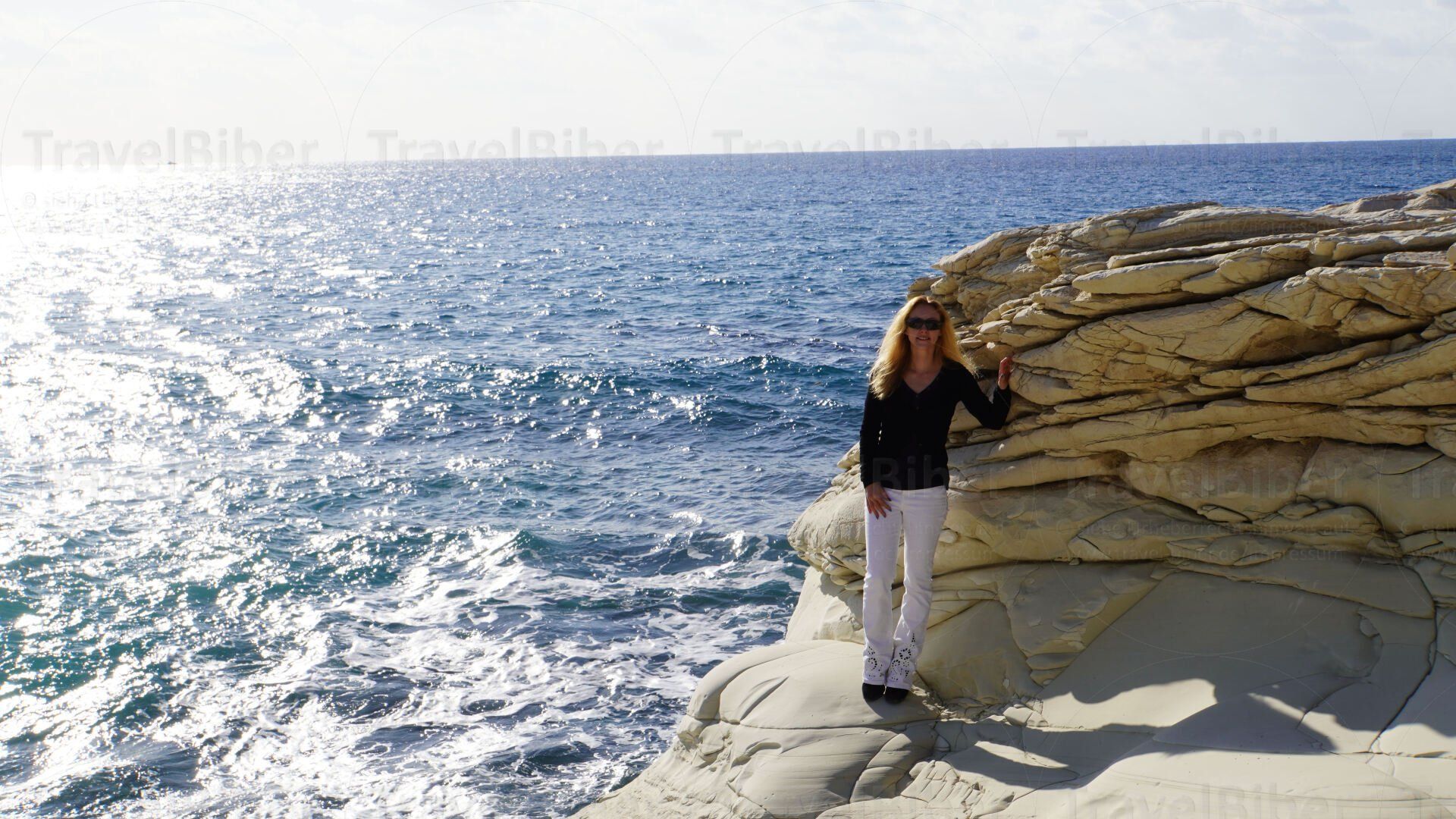 Nicht weit entfernt vom Kloster befindet sich dieser Strand mit weißen glatt geschliffenen Felsplatten.