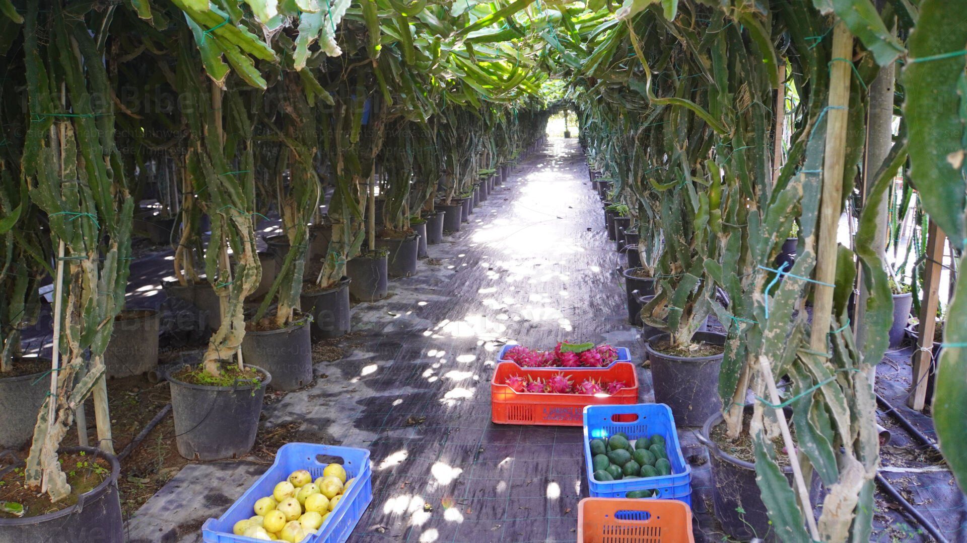 In der Nähe der weißen Felsen in einer Obstplantage. Hier werden Drachenfrüchte angebaut.